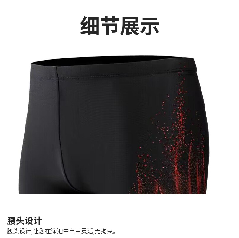 男士泳裤时尚经典火焰泳裤平角防尴尬加大码游泳装备温泉游泳裤速