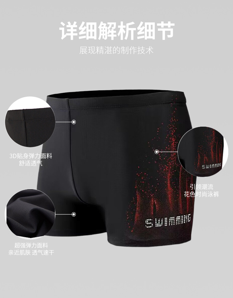 新款泳裤男平角泳衣速干透气四角时尚款游泳舒适温泉男士游泳裤