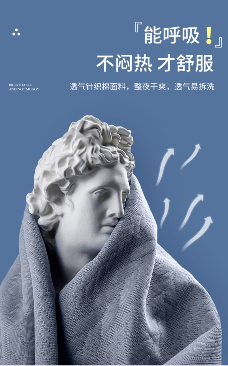 • 파란색과 회색 니트 깃털 벨벳 베개-하나의 높은 베개