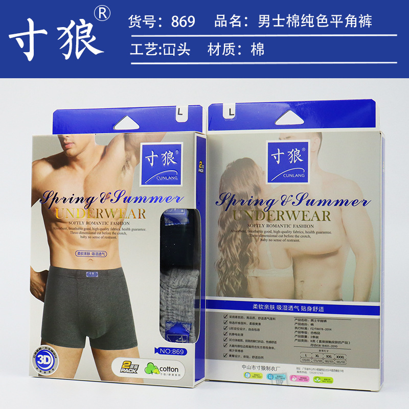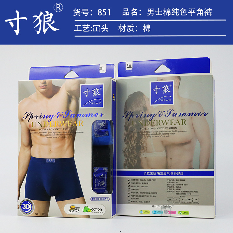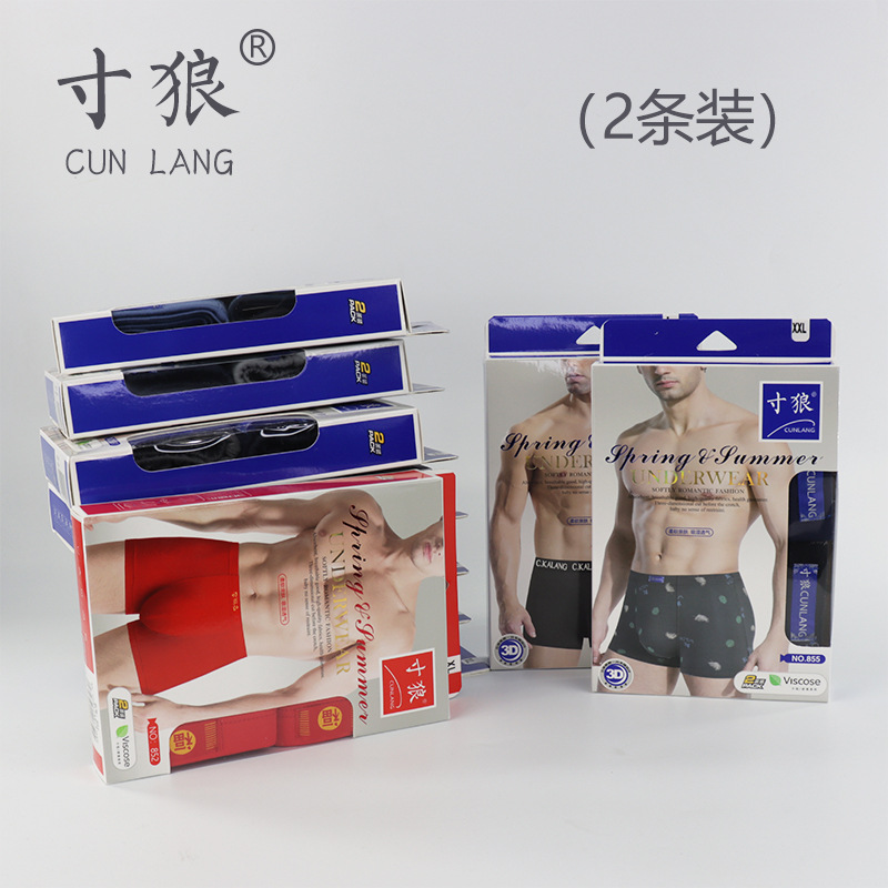 사용자 정의 2 팩 남성 속옷 박스형 남아 단색 상자 면 느슨한 통기성 미드 웨이스트 복서