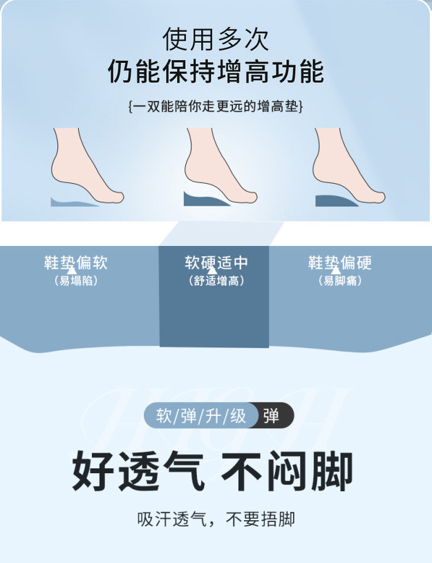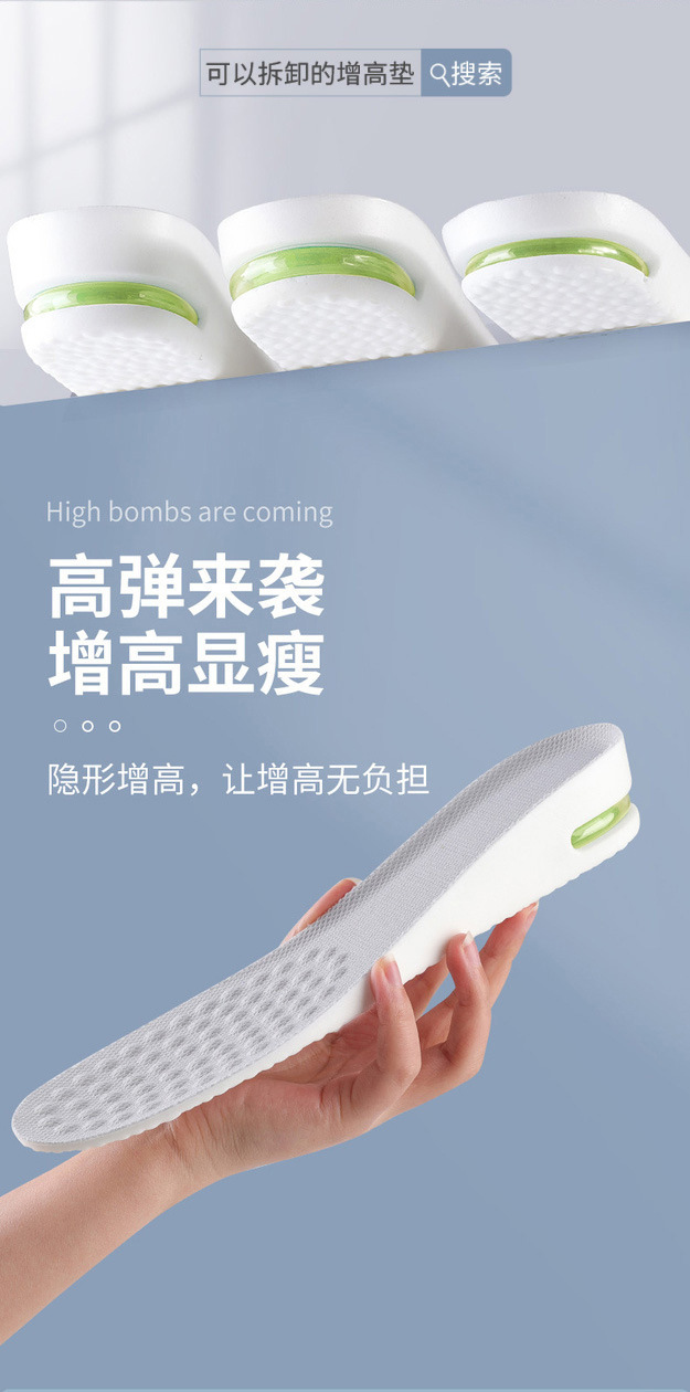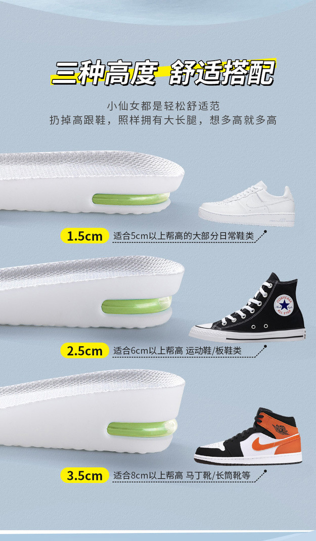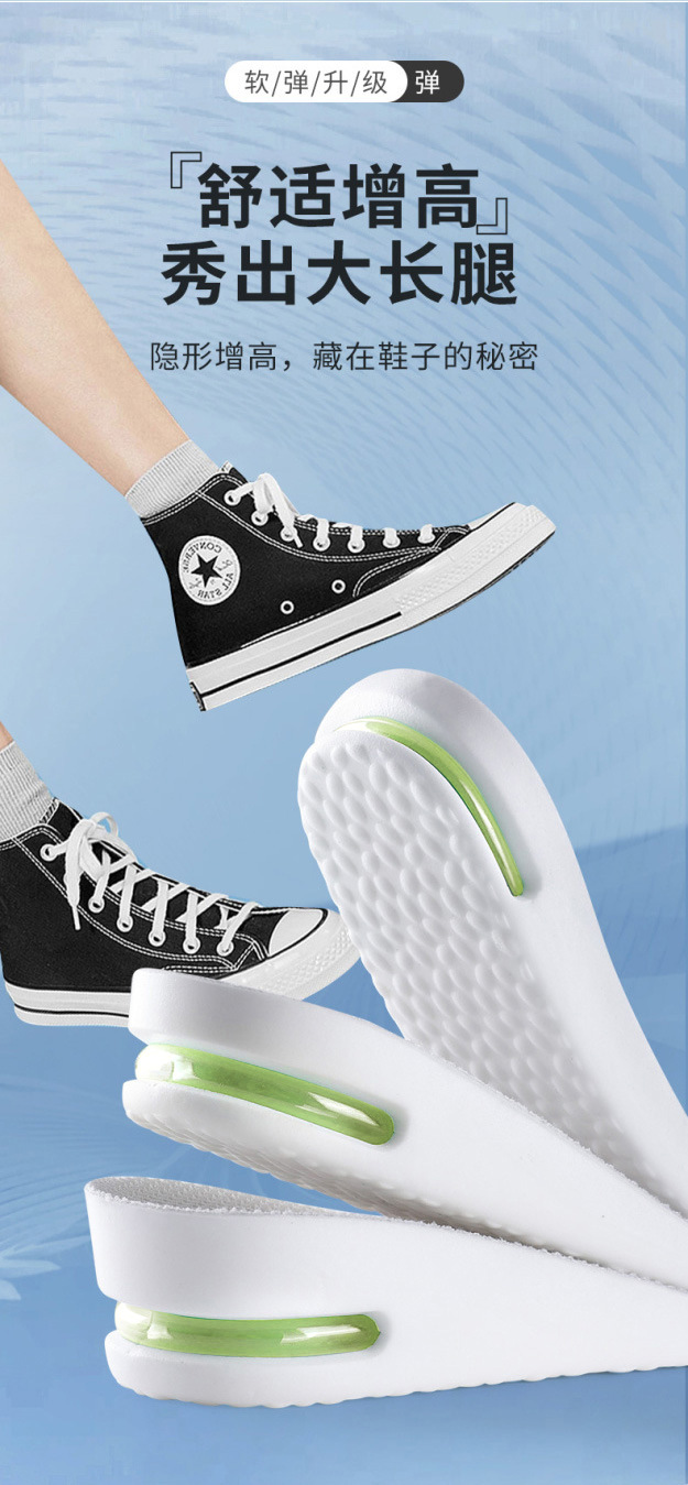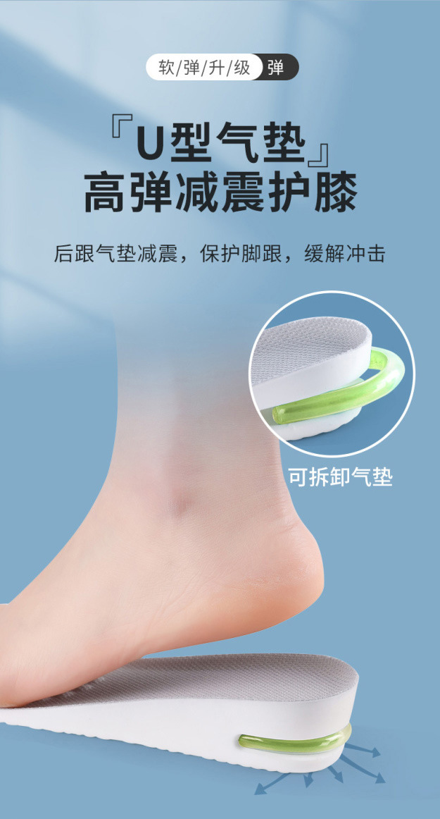 PU 소재 스포츠 고조 깔창 남성 및 여성용 풀 패드 보이지 않는 내부 고조 패드 편안한 쿠션 삽입 기관 깔창 배치