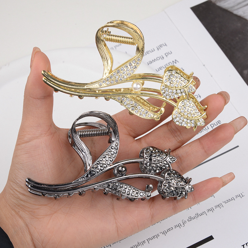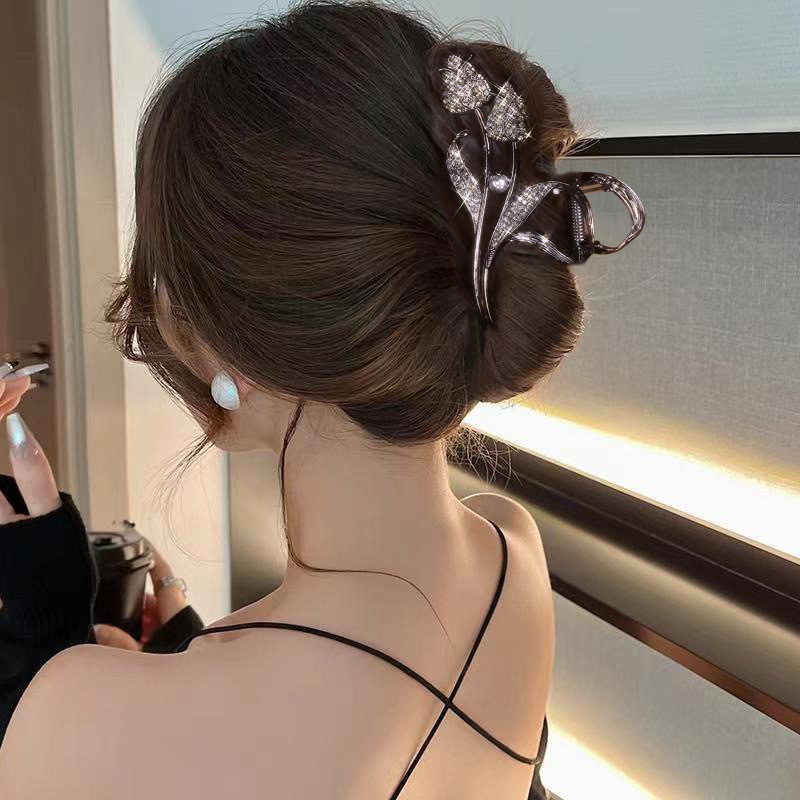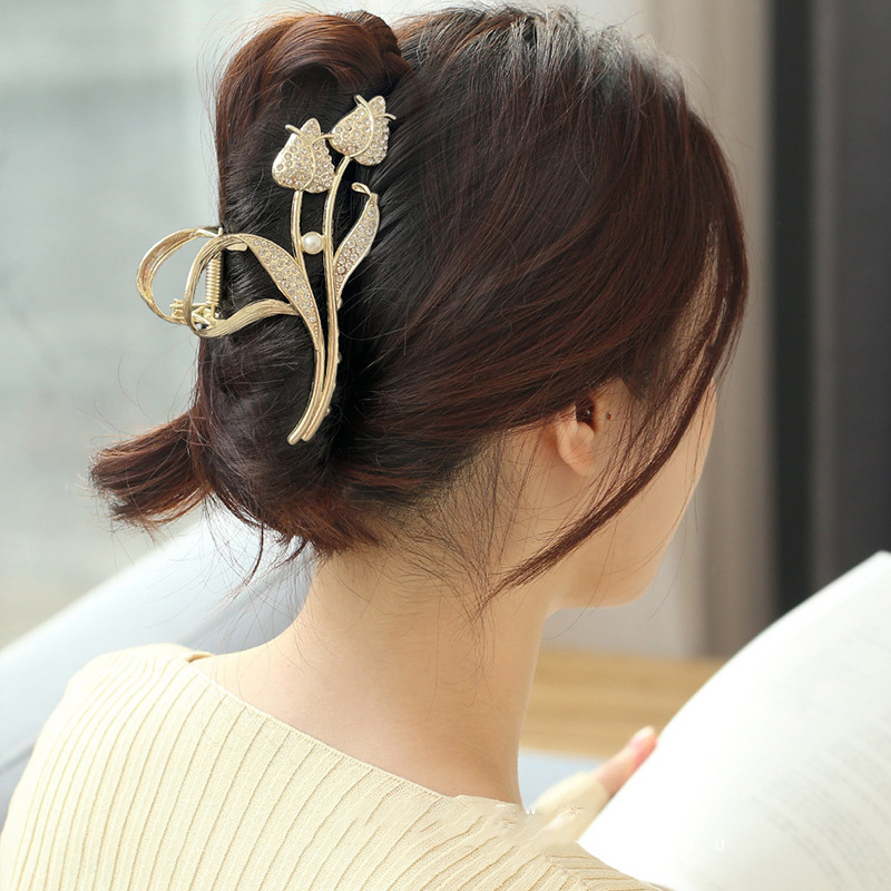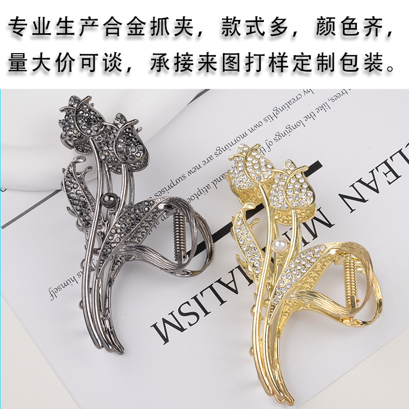 2023 새로운 튤립 디자인 센스 잡아 클립 하이 엔드 우아한 상어 클립 백 헤드 대형 하이 엔드 센스 머리핀