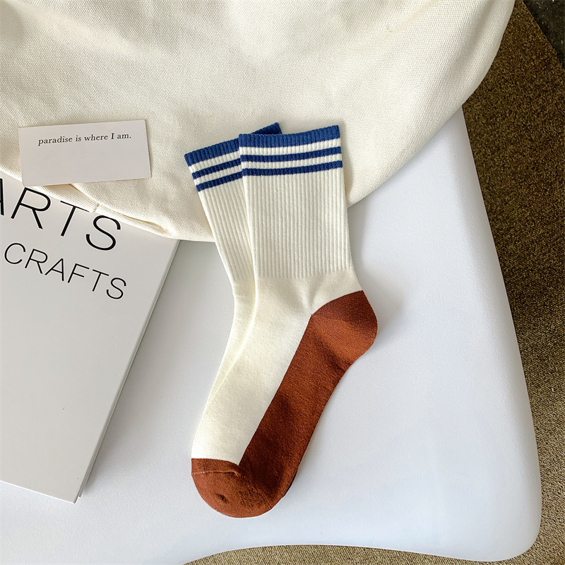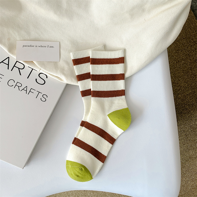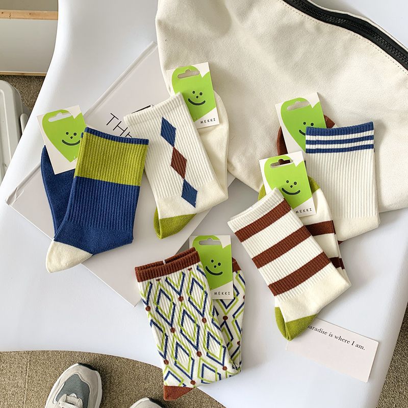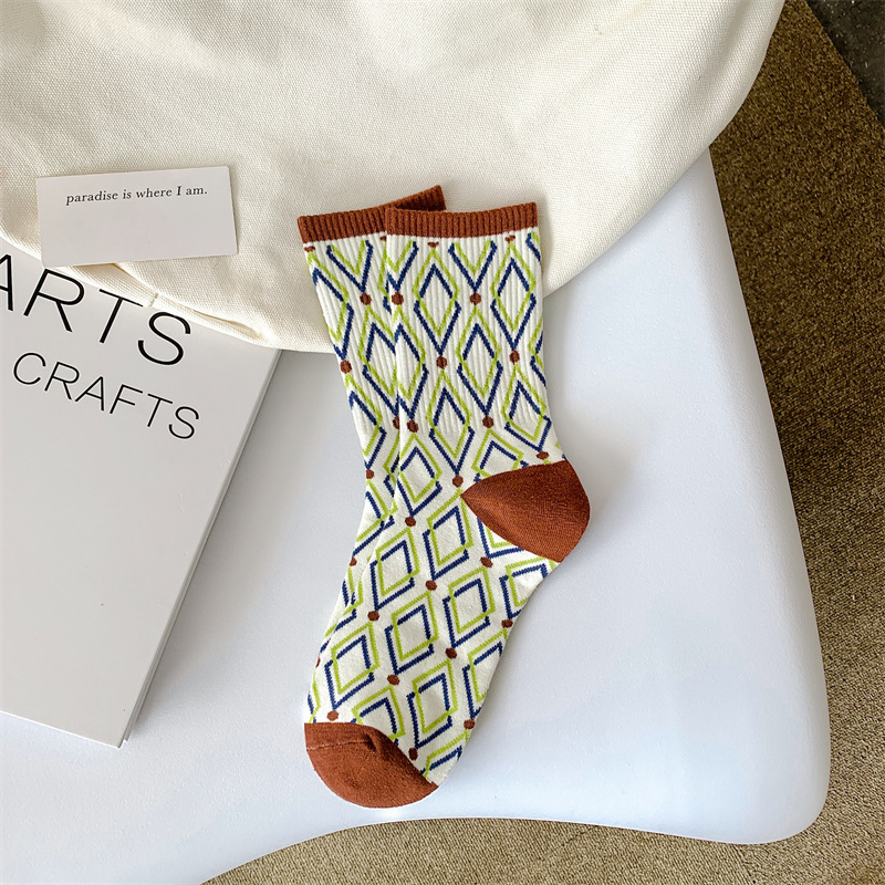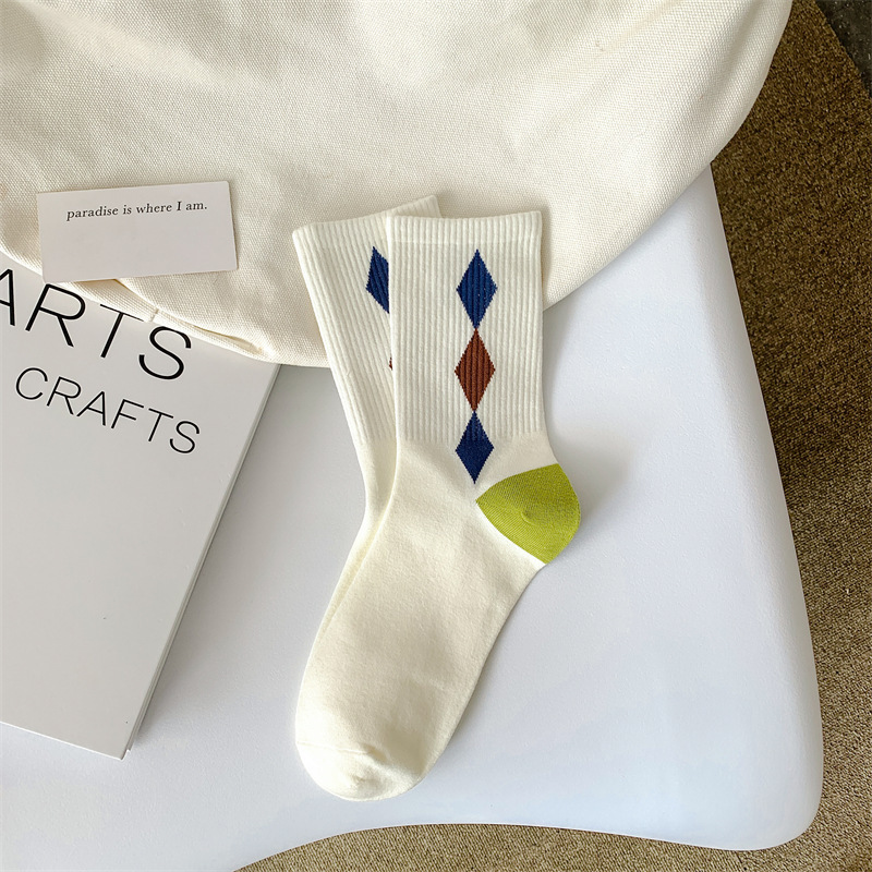 봄과 여름 새로운 한국 스타일 유행 양말 여성 양말 스트라이프 다이아몬드 미드 양말 여성 스포츠 캐주얼 긴 양말