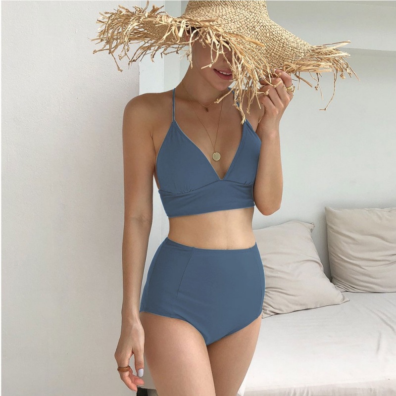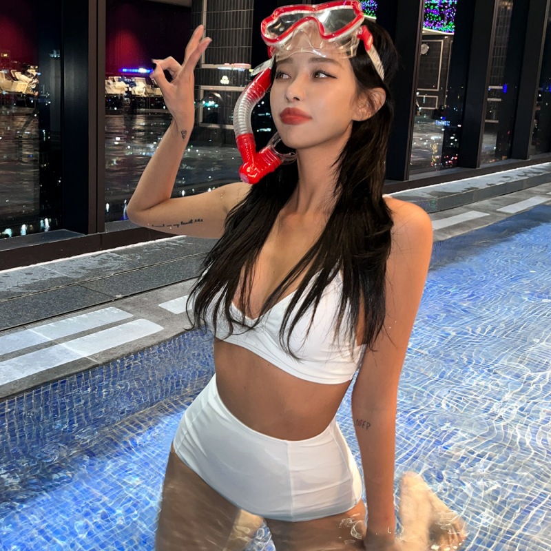 크로스 보더 도매 심플 인 스타일 화이트 스플릿 비키니 스트랩 아름다운 백업 가슴 높은 허리 배꼽 커버 슬림 수영복스토어 가기