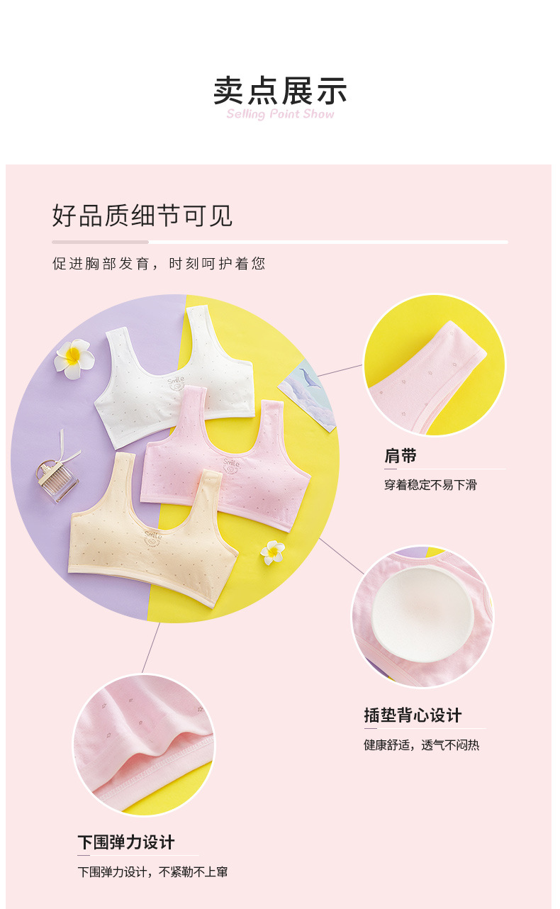 발달기 속옷 여아 브라 순면 중고등학생 단색 편안한 조끼형 브라 패드 포함스토어 가기