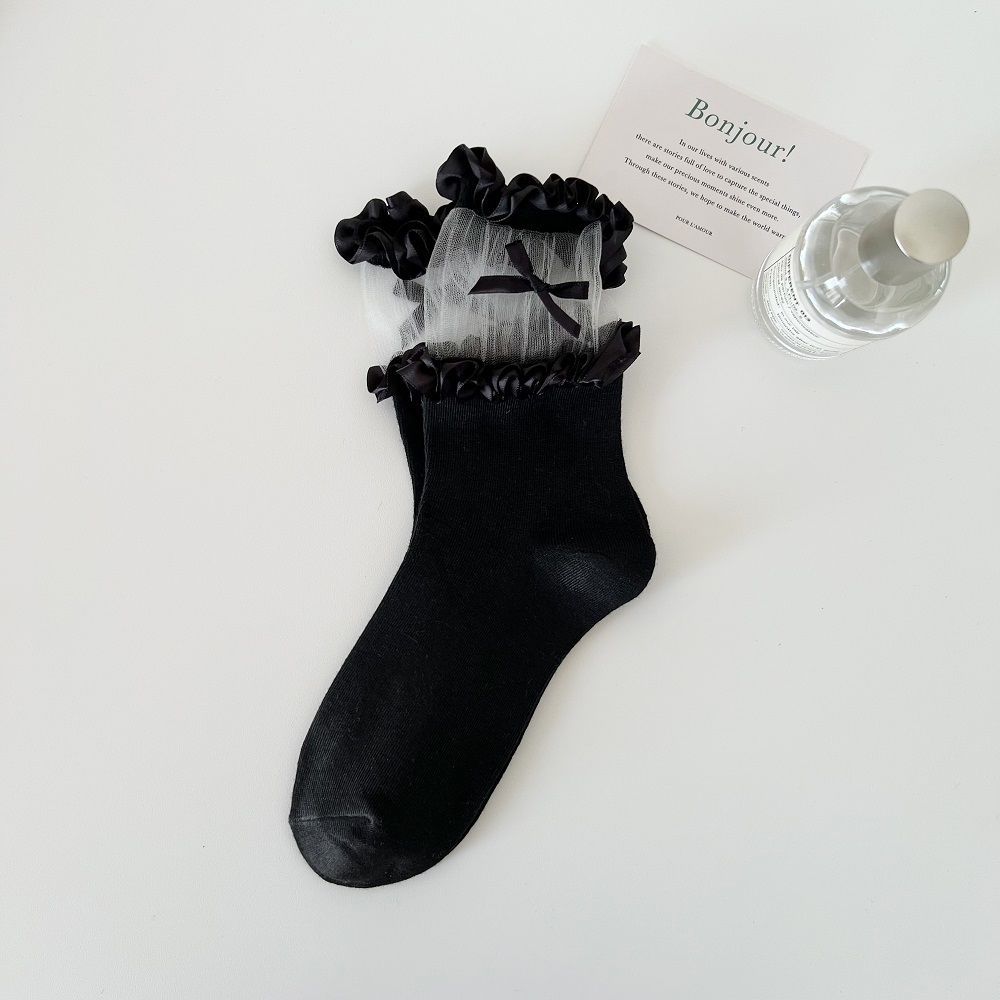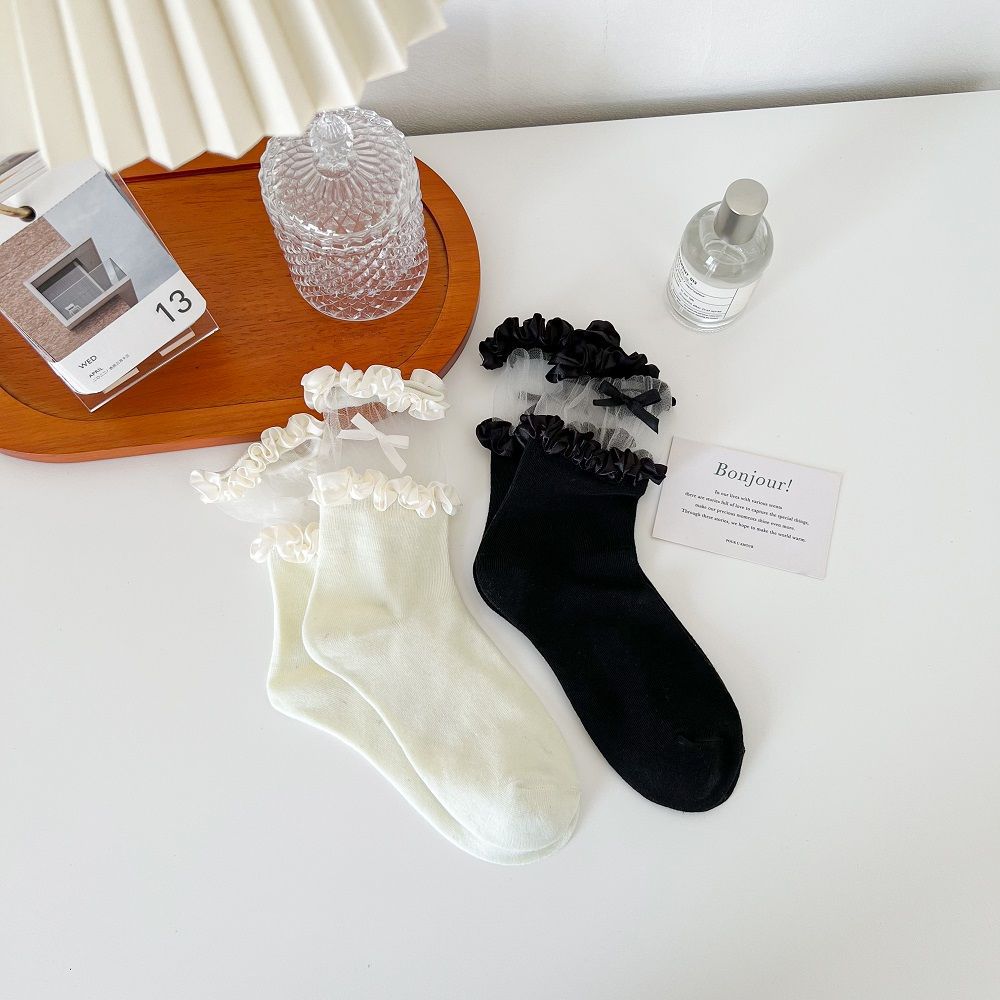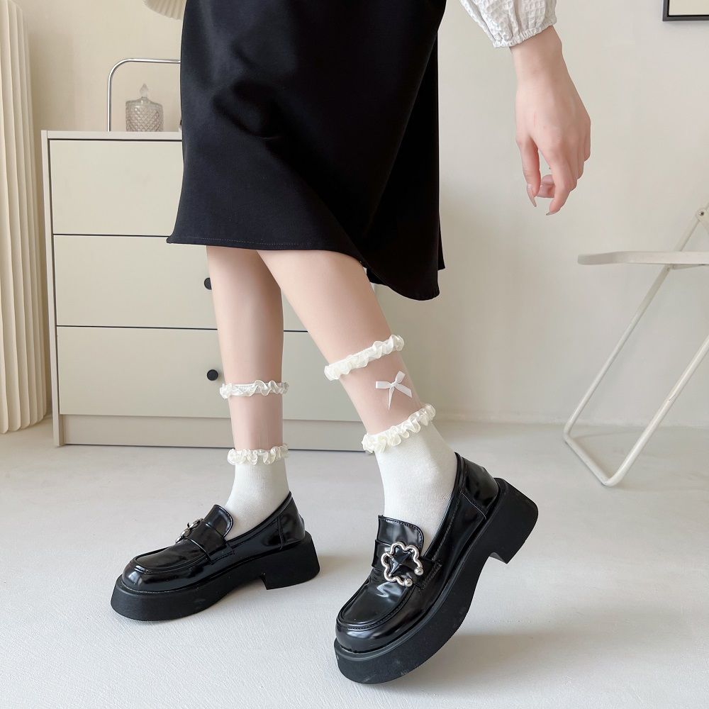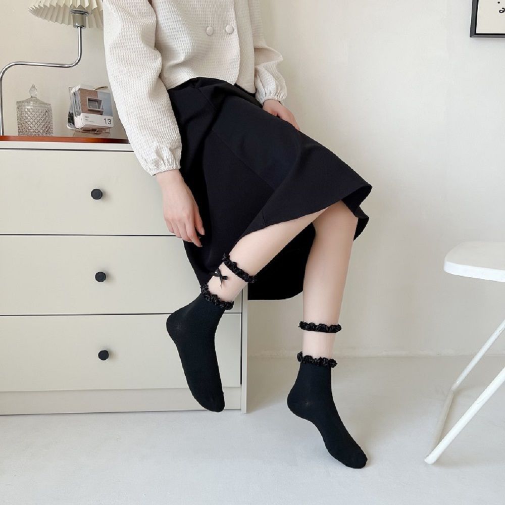 작은 빨간 책 같은 스타일 흑백 끈 양말 어린이 활 중간 길이 양말 얇은 작은 가죽 신발 jk 양말 로리타스토어 가기