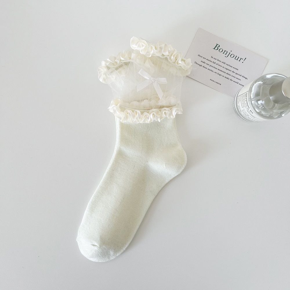 작은 빨간 책 같은 스타일 흑백 끈 양말 어린이 활 중간 길이 양말 얇은 작은 가죽 신발 jk 양말 로리타
