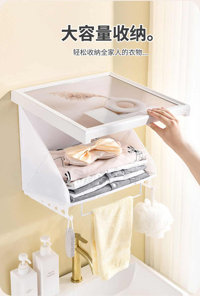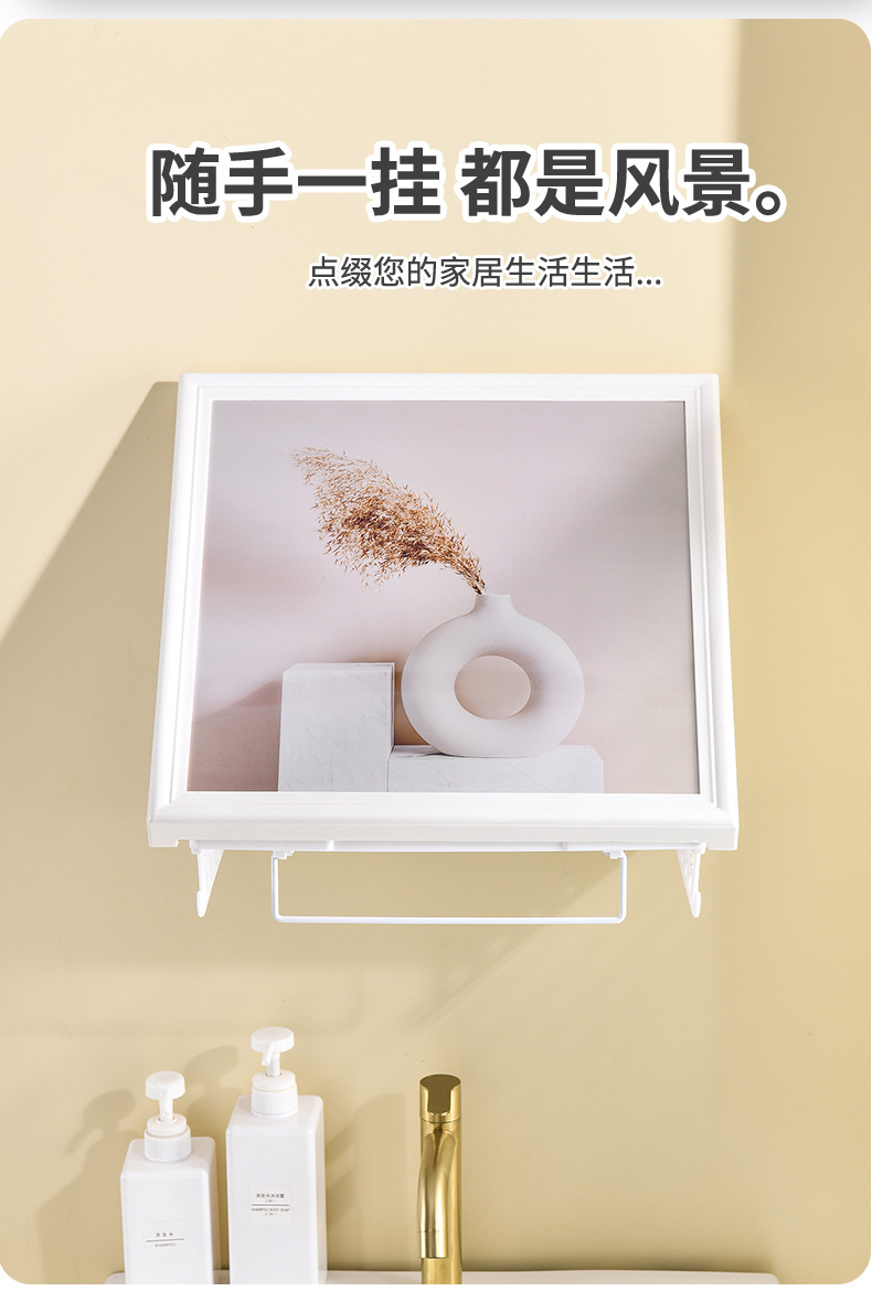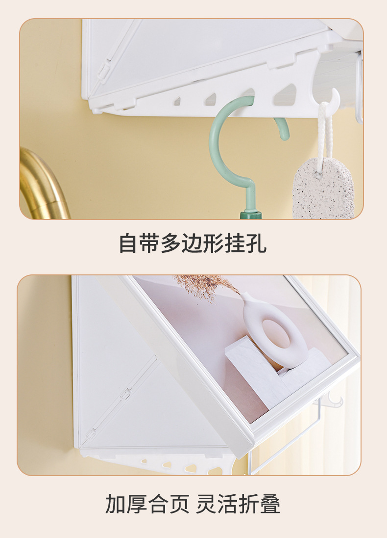 새로운 욕실 방수 벽화 접이식 수납 벽걸이 사진 프레임 욕실 수납 랙 펀치 프리 로커