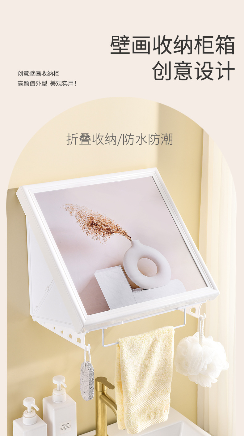 새로운 욕실 방수 벽화 접이식 수납 벽걸이 사진 프레임 욕실 수납 랙 펀치 프리 로커스토어 가기