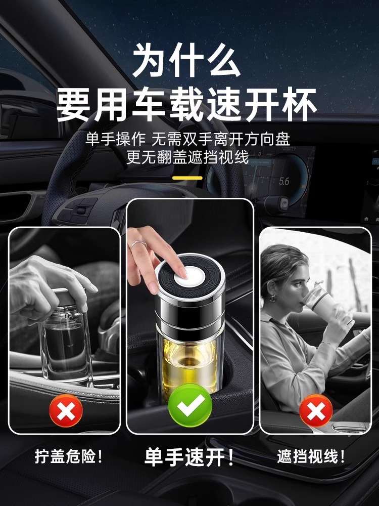 자동차 빠른 오픈 컵 원 버튼 오픈 뚜껑 절연 유리 컵 차 분리 차 컵 맞춤형 컵 선물 컵