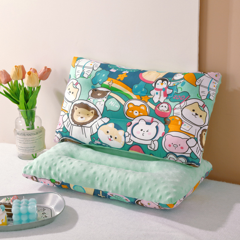 코튼 콩 베개 버블 벨벳 만화 어린이 베개 코어면 유치원 낮잠 목 보호 베개 AB 양면 수면 베개