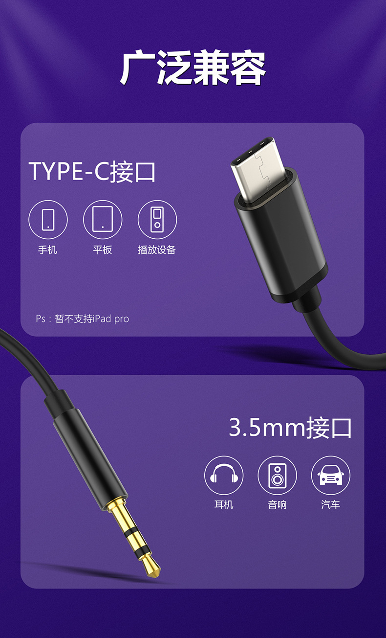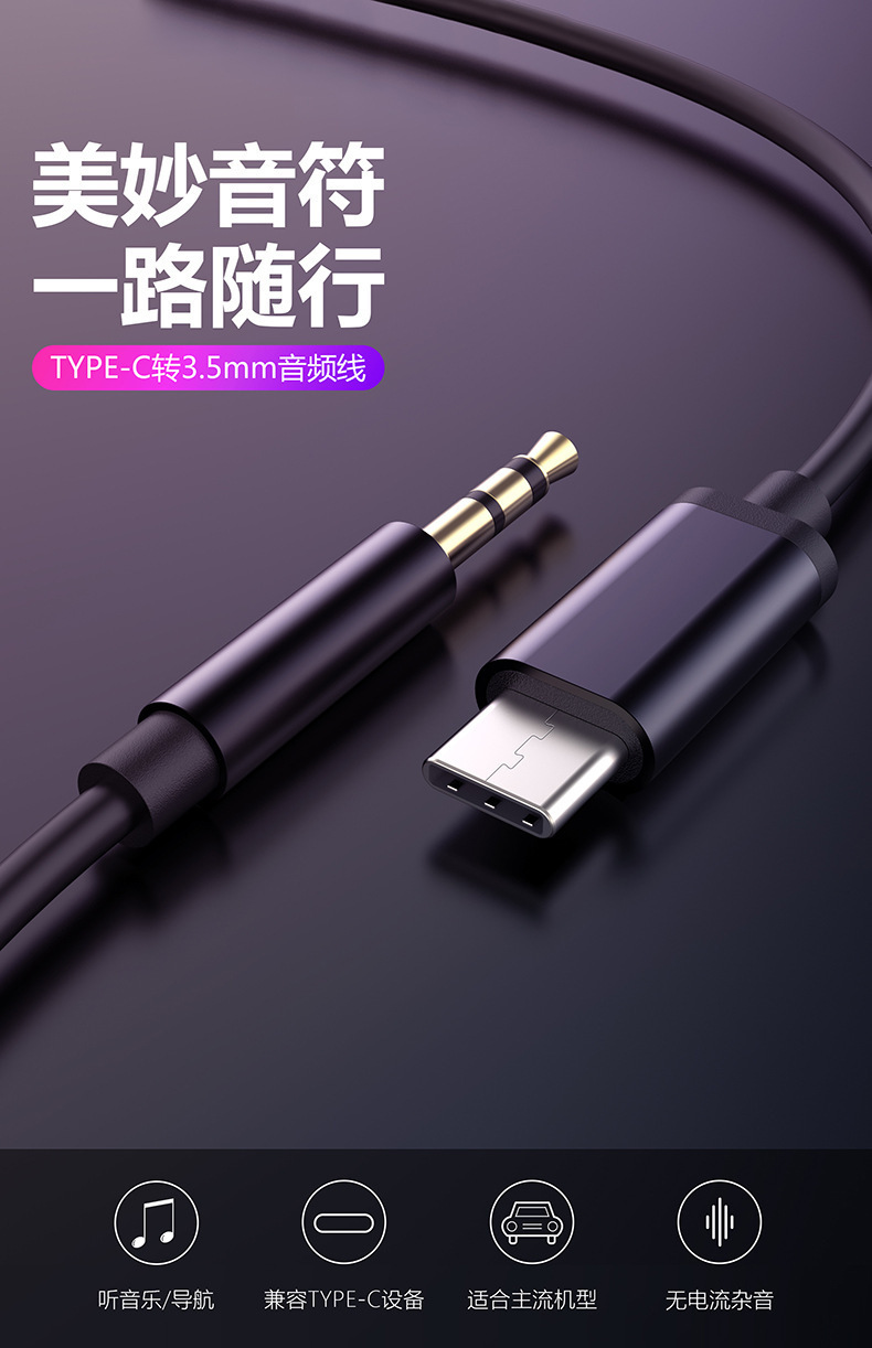 유형 c AUX 휴대 전화 오디오 라인 디지털 디코딩 3.5mm 범용 자동차 1 미터 연결된 스피커 라인에 적합
