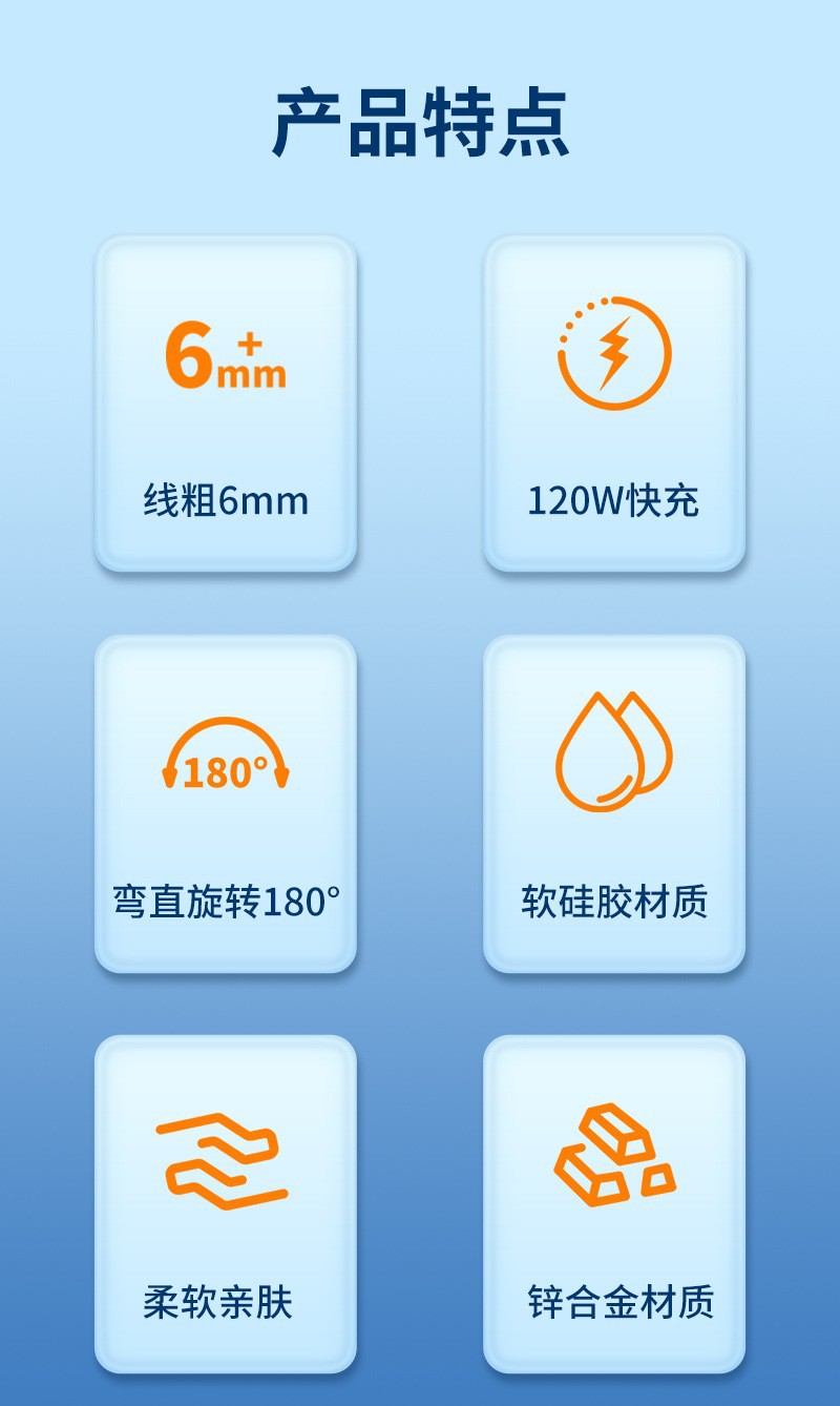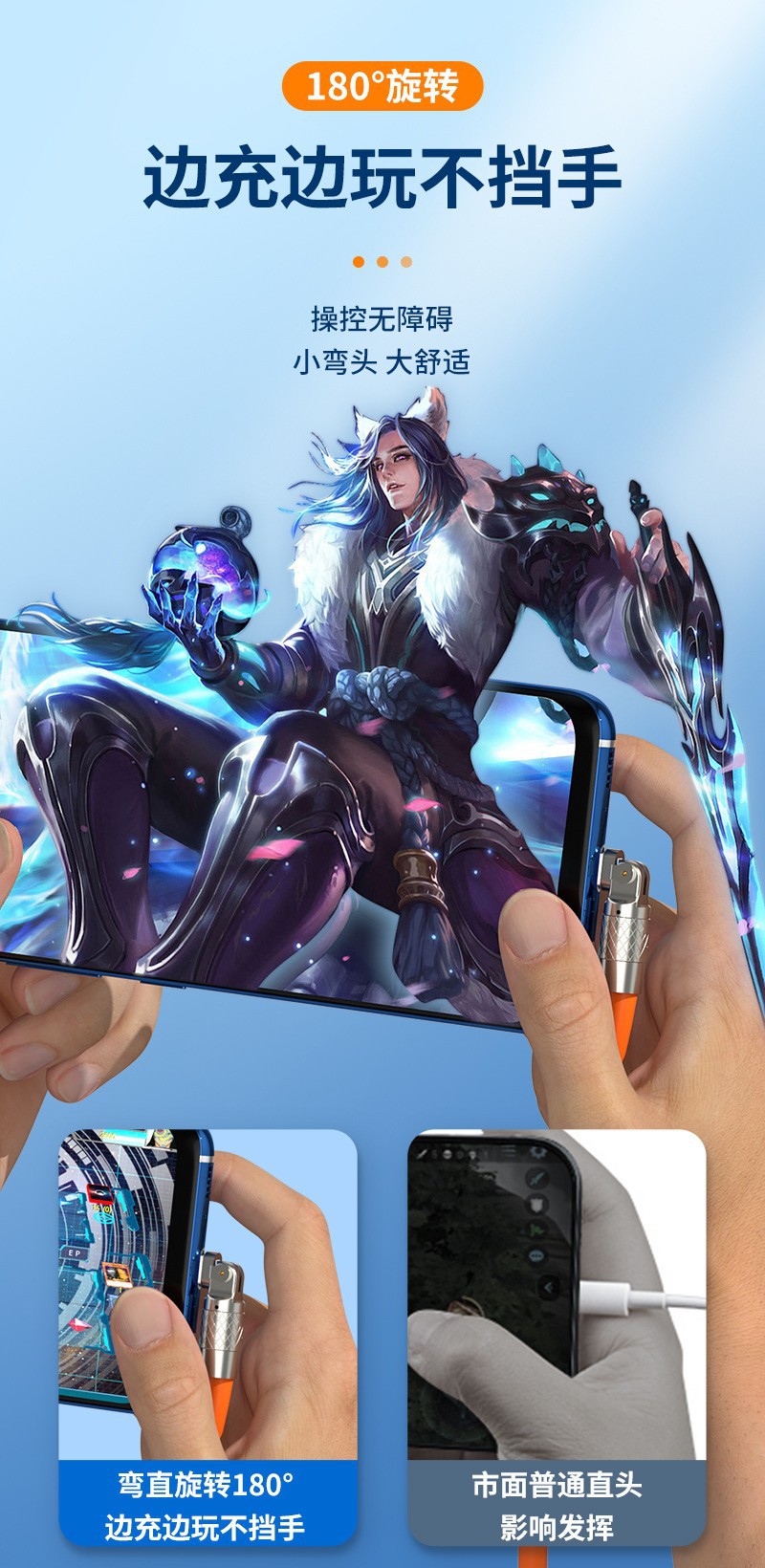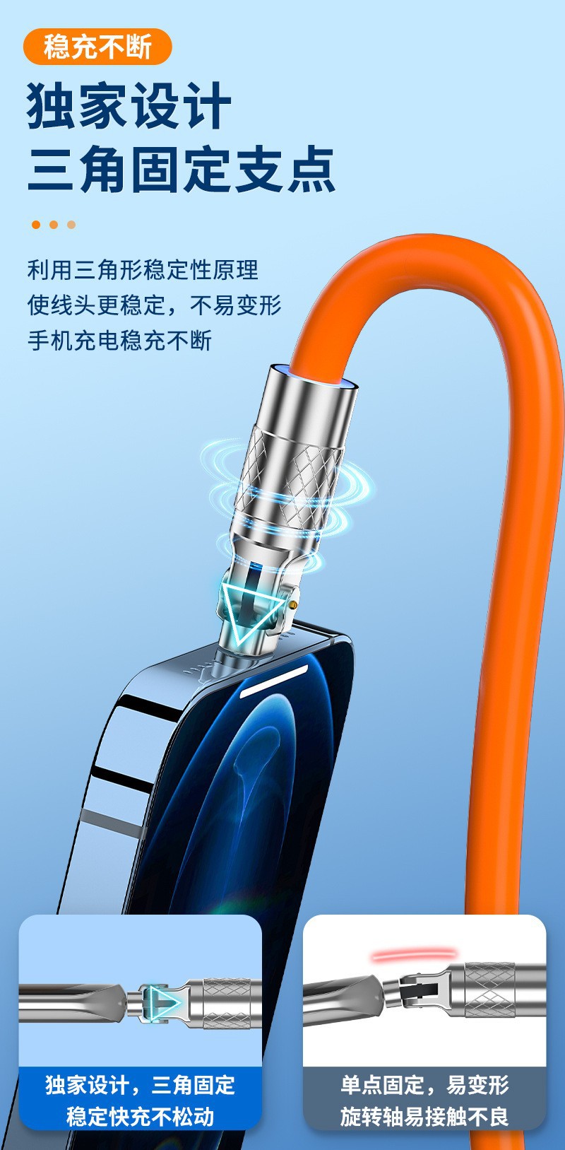 【产品名称】:180度旋转机客线 支持快充,支持数据传输