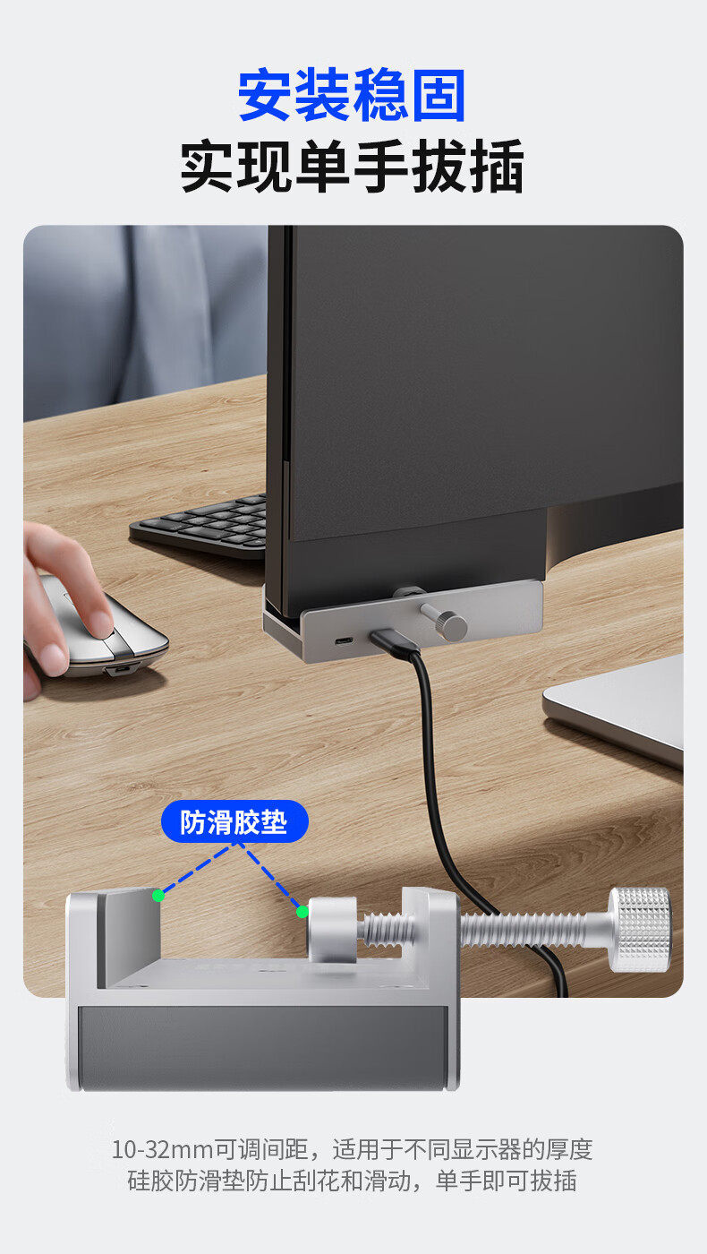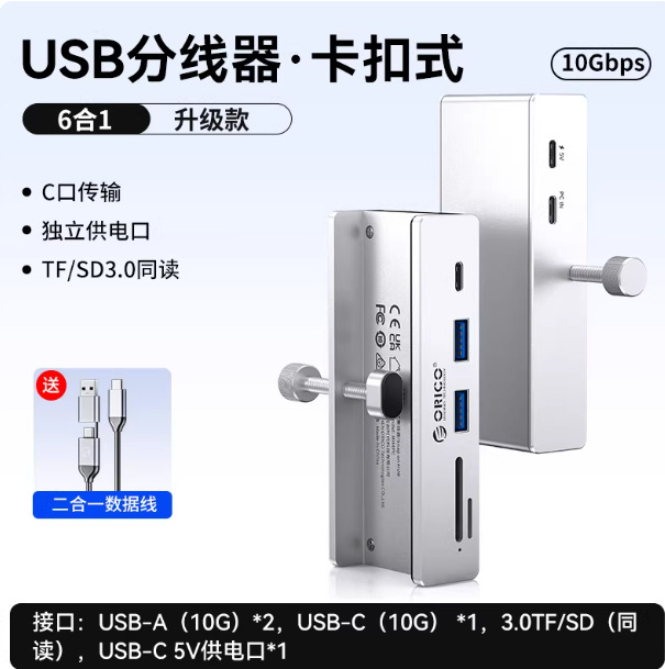 • 10Gbps 업그레이드 모델* [6-in-1] U 포트 + C 포트 3.2|SD/TF3.0 동시 읽기| 5V 전원 포트*실버