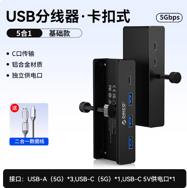 • 10Gbps 업그레이드 모델* [6-in-1] U 포트 + C 포트 3.2|SD/TF3.0 동시 읽기| 5V 전원 포트*검정색