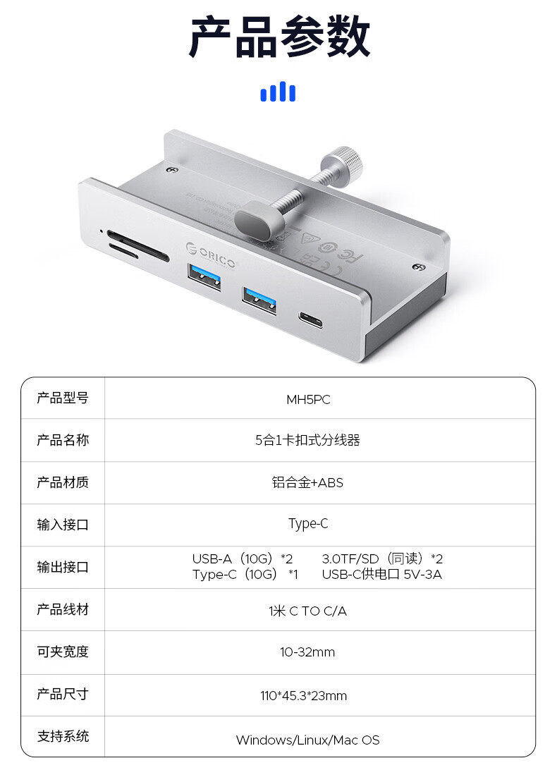 오리코 USB3.0 클립형 확장 도크 스플리터 1-4 멀티포트 USB 허브 외장형 컴퓨터용