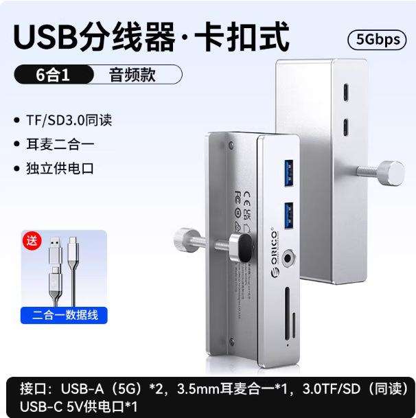 • 오디오 모델*【6-in-1】USB3.0|SD/TF3.0 동시 읽기|오디오 2-in-1| 5V 전원 포트*검정색