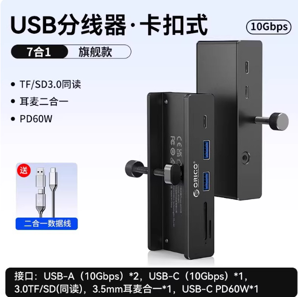 • 10Gbps 플래그십 모델* [7-in-1] U 포트 + C 포트 3.2|SD/TF3.0 동시 읽기|오디오 2-in-1| PD60W*블랙