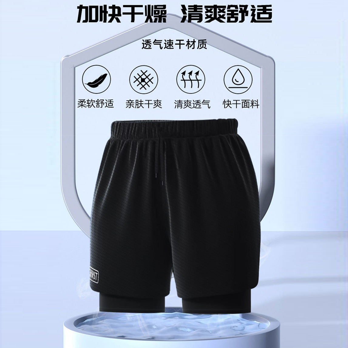 • 80859 블랙 더블 레이어 수영 트렁크 세트