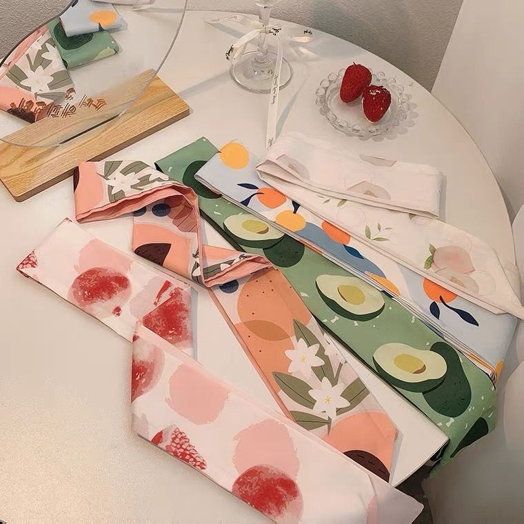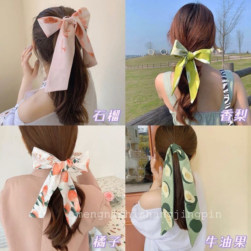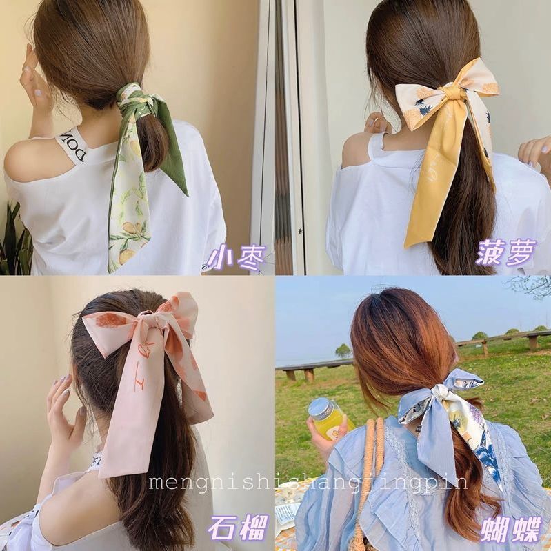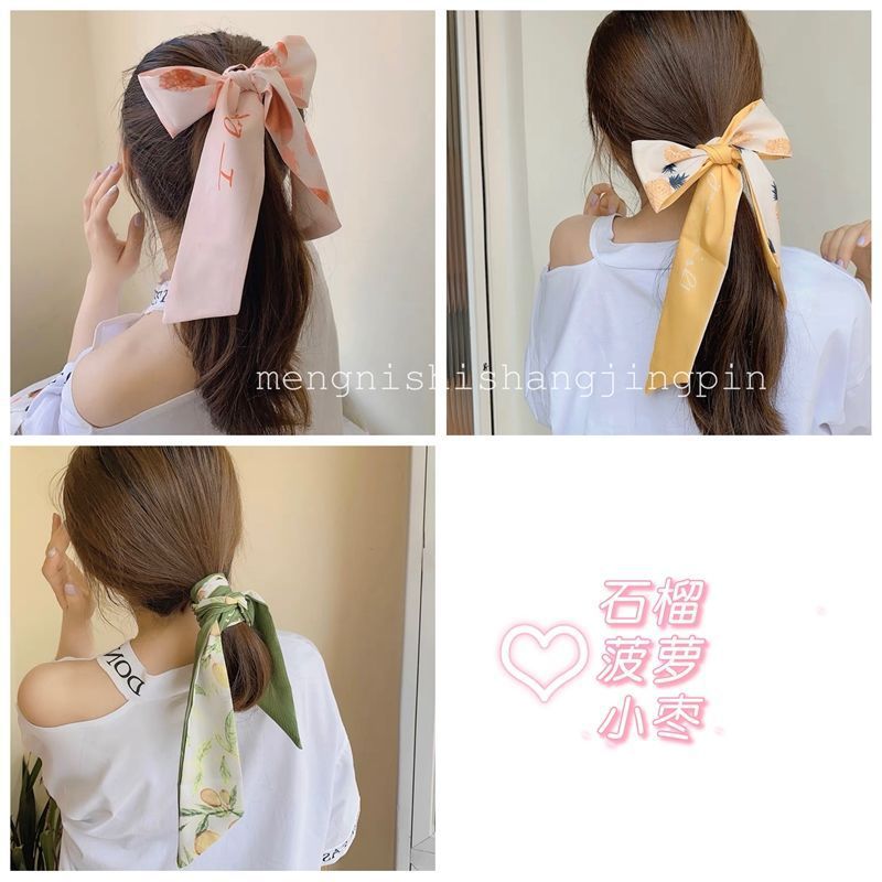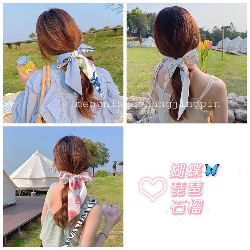 헤어 밴드 여자의 넥타이 머리 요정 과일 리본 인터넷 빨간 머리 밧줄 모든 일치 얇은 작은 실크 스카프 헤어 밴드 여자의 여름 머리 직조스토어 가기