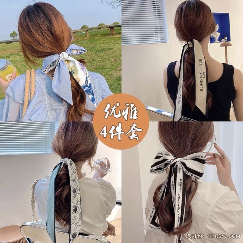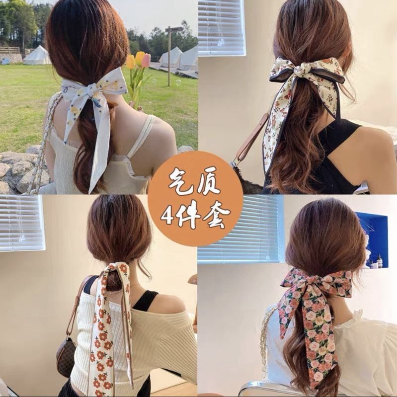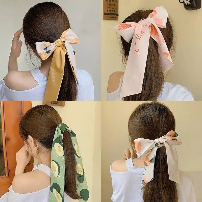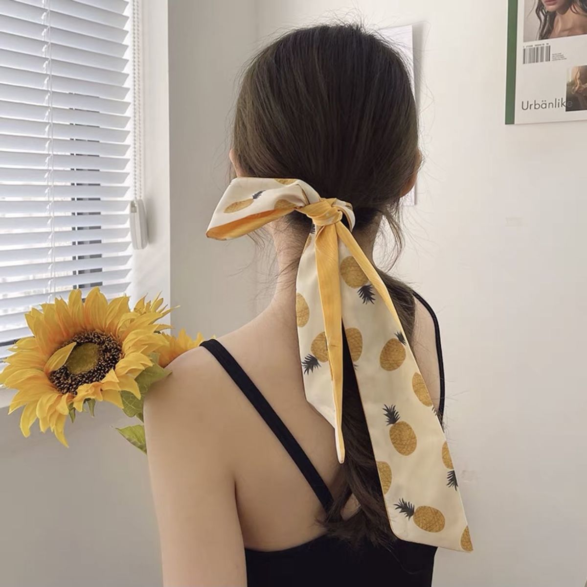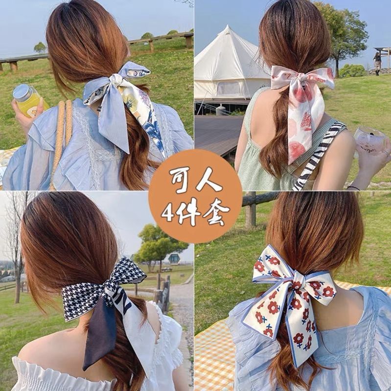 헤어 밴드 여자의 넥타이 머리 요정 과일 리본 인터넷 빨간 머리 밧줄 모든 일치 얇은 작은 실크 스카프 헤어 밴드 여자의 여름 머리 직조스토어 가기