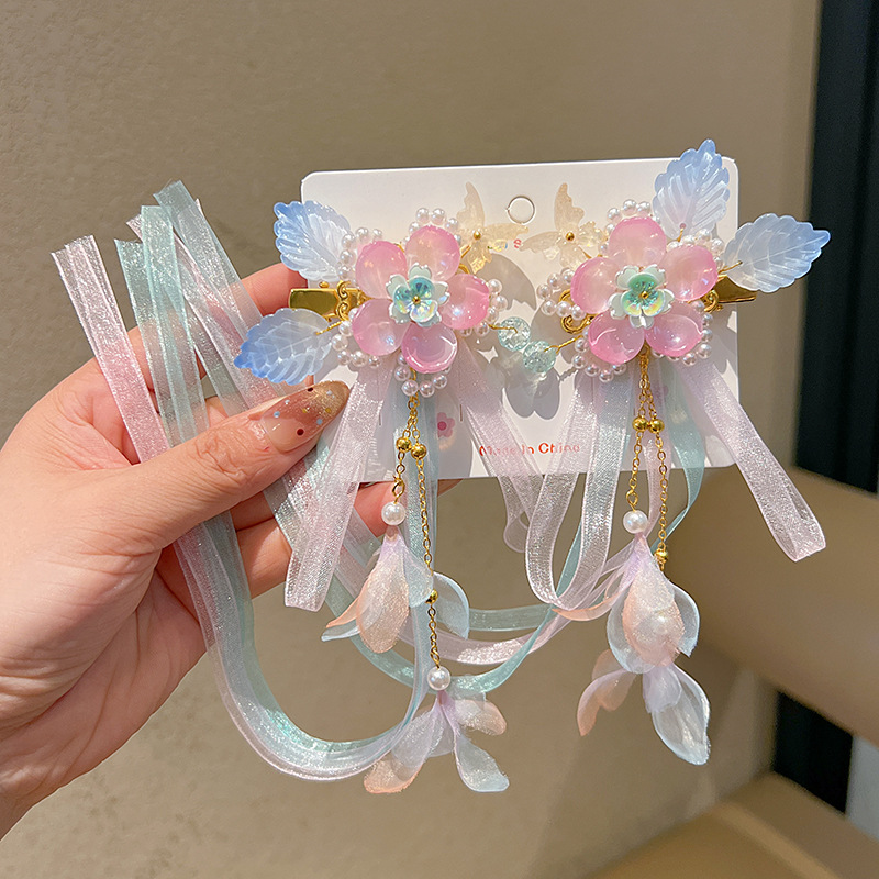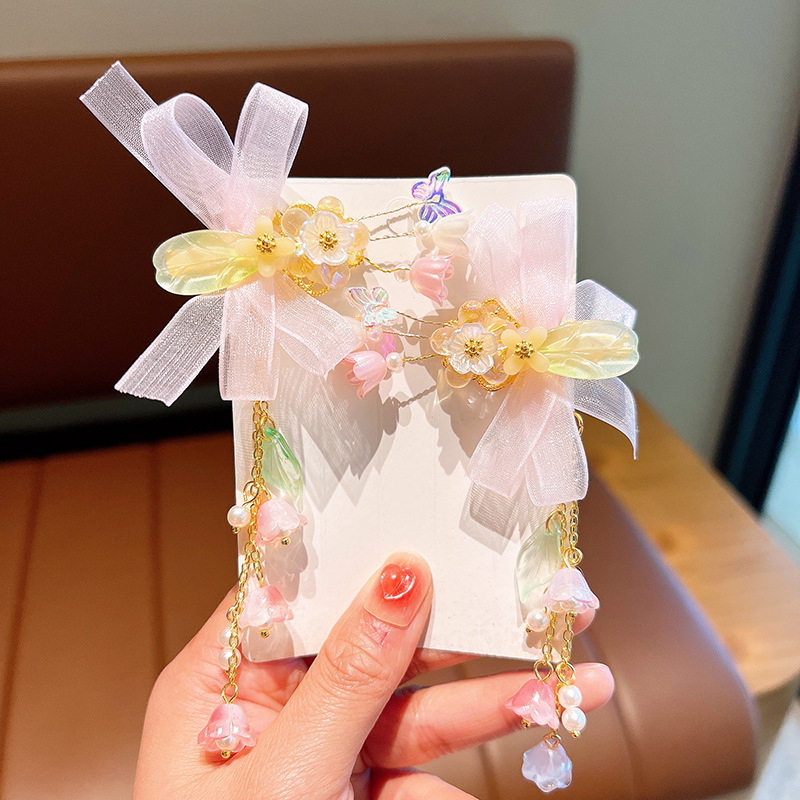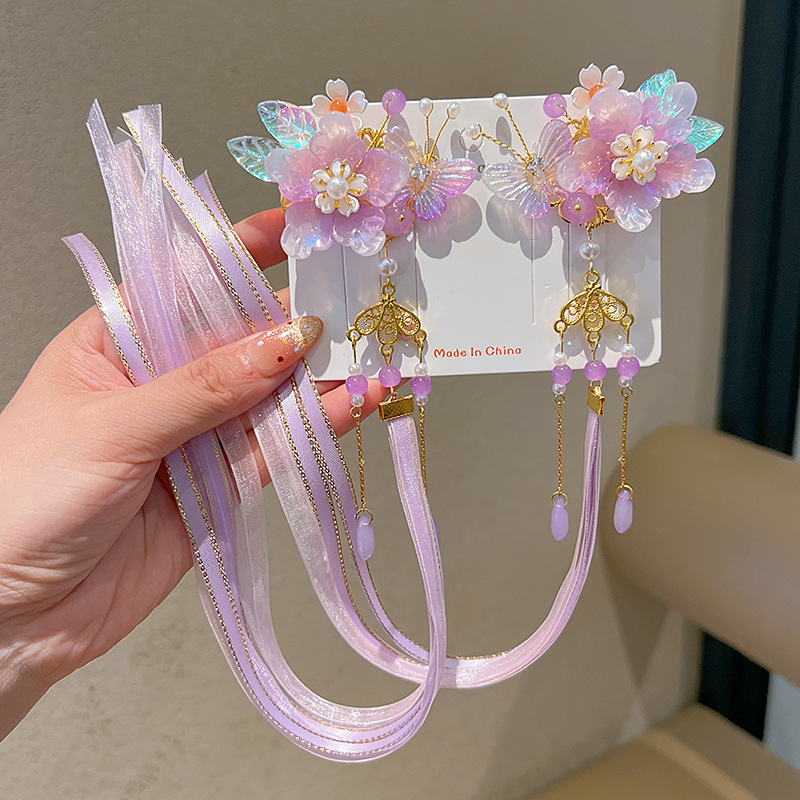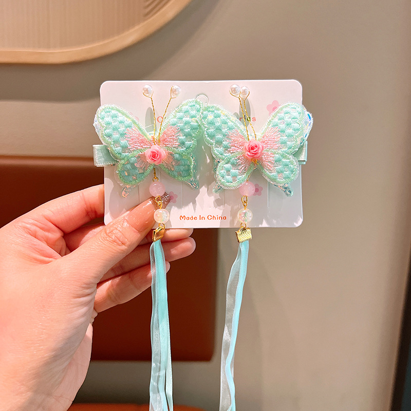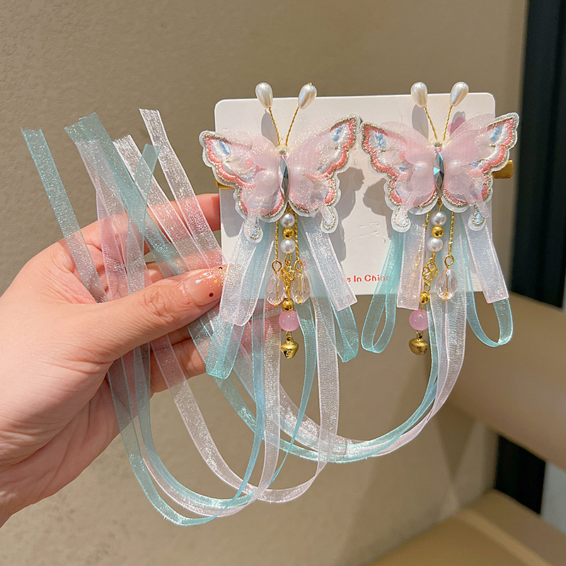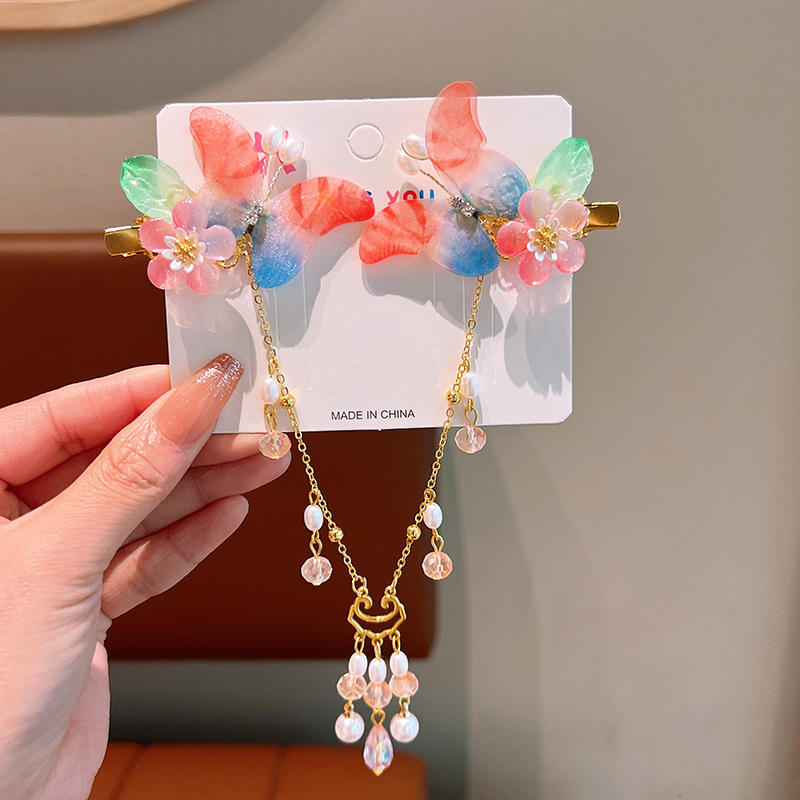 어린이 골동품 헤어 클립 소녀의 슈퍼 요정 나비 헤어 클립 아기의 고대 코스트 사이즈 중국 의류 술 헤어 액세서리 중국 스타일 모자