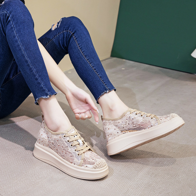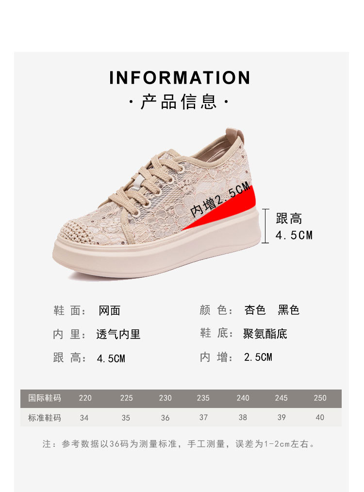 여성용 어부 신발, 키높이 효과, 2025 봄/가을 신상, 메쉬 소재, 통기성 좋은 두꺼운 밑창 플랫폼 신발, 소형 사이즈 31 32 33스토어 가기