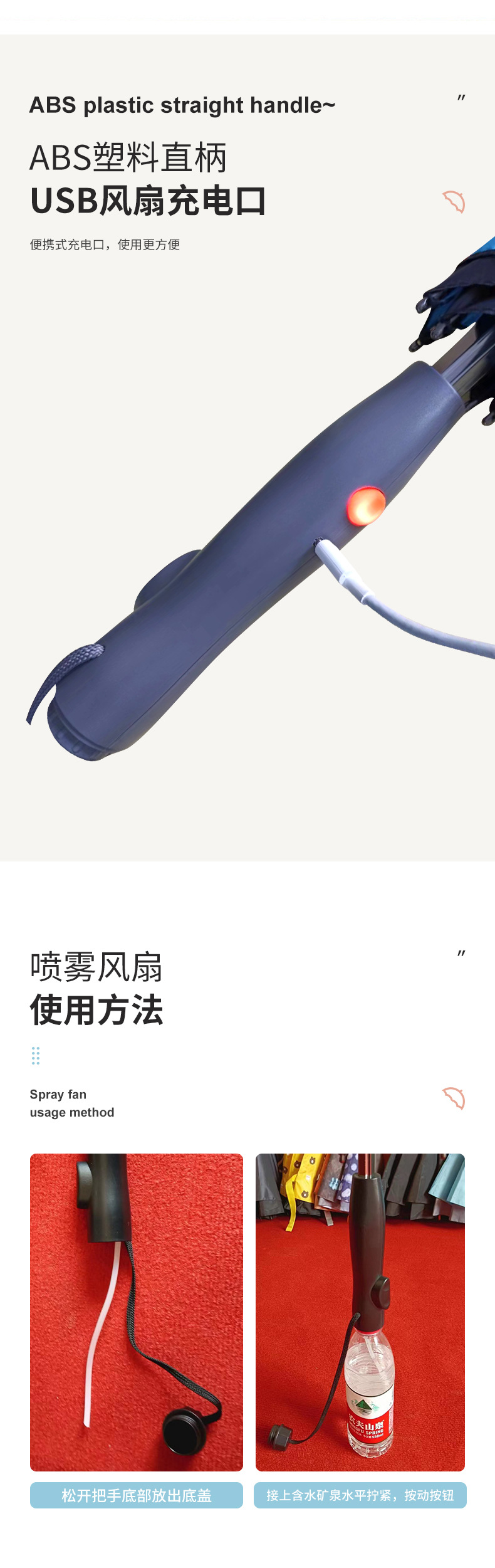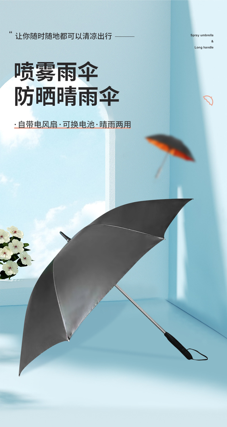 2024 새로운 충전식 스프레이 우산 팬 이중 사용 우산 비 자외선 보호 태양 그늘 냉각 긴 핸들 우산