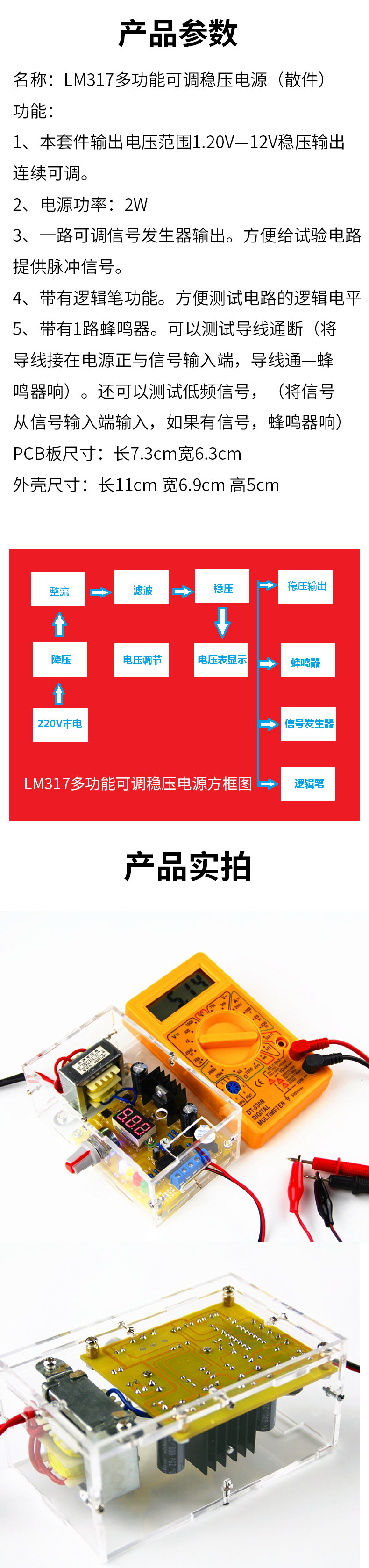 LM317 조정 가능한 전압 조정기 전원 공급 장치 220V AC DC 교육 어셈블리 전자 부품 DIY 쉘 키트