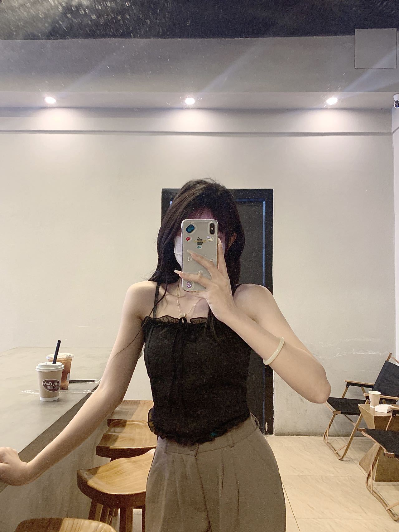 프랑스 스타일 레이스 스트랩 레이스 캐미솔 조끼 여성용 클리트 커버 내부 착용 외부 착용 틈새 섹시한 향신료 소녀 바닥 탑