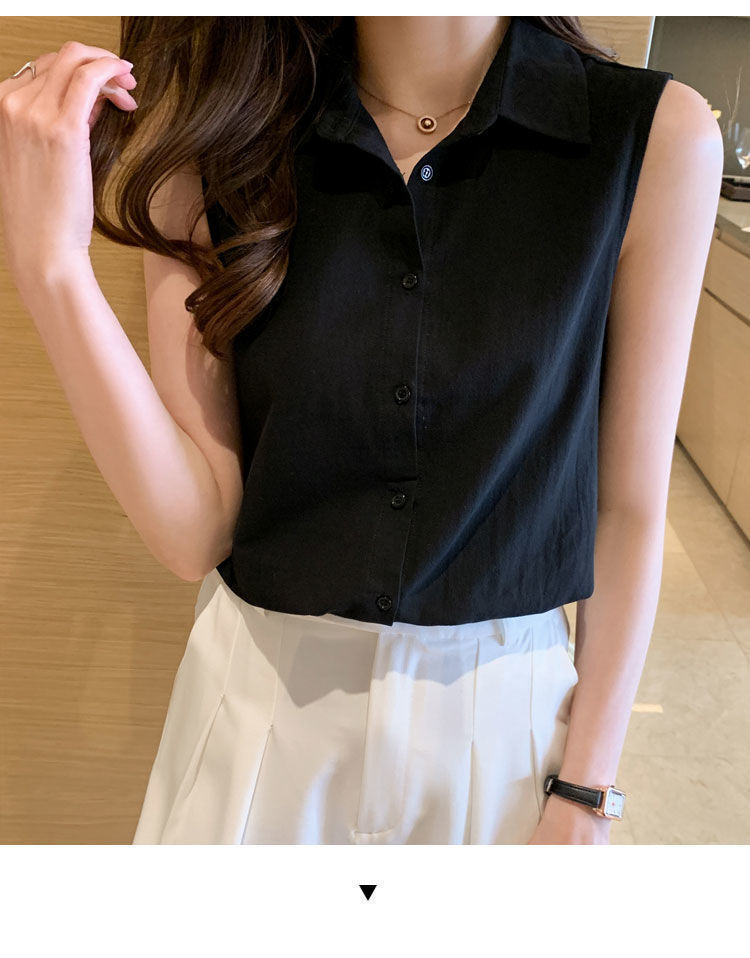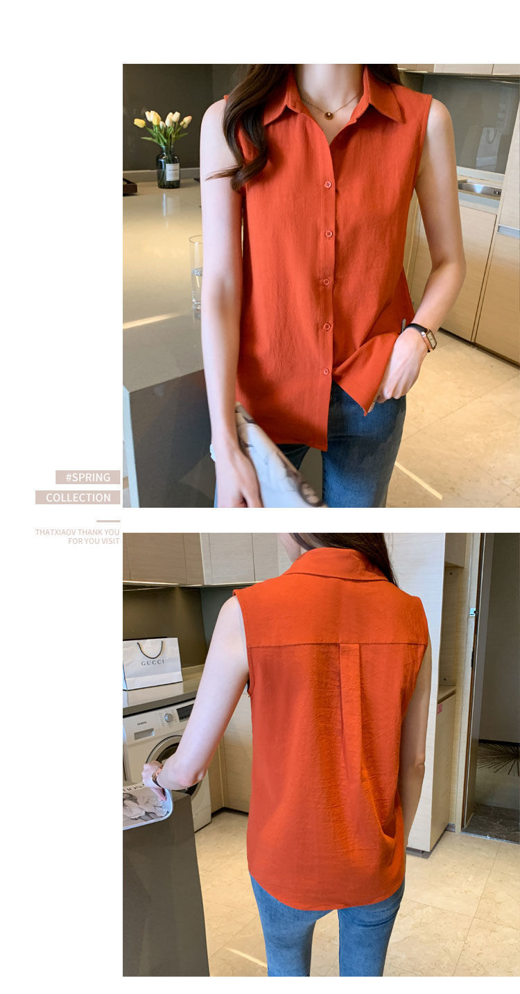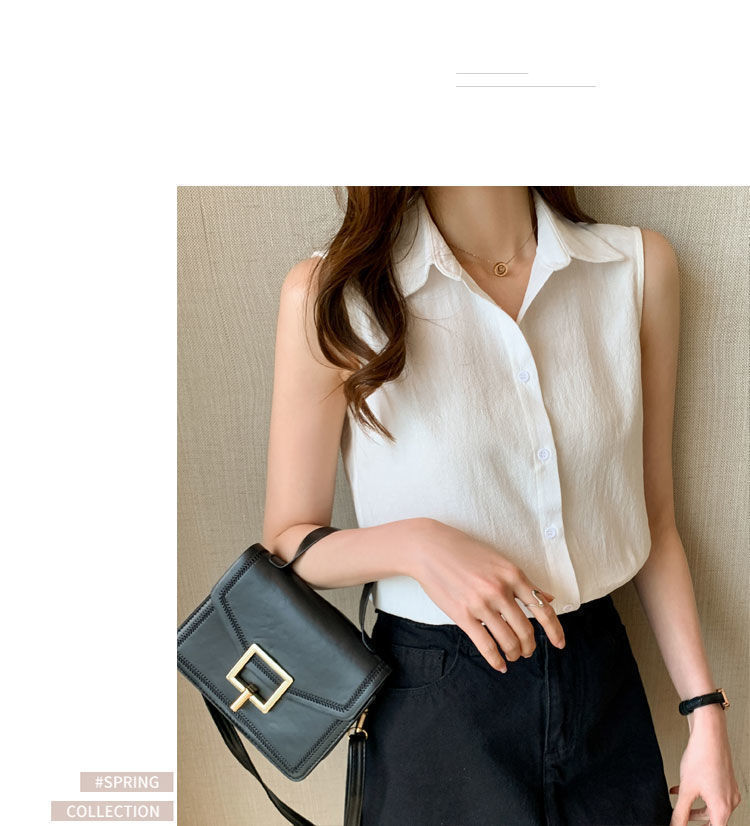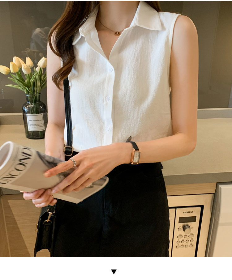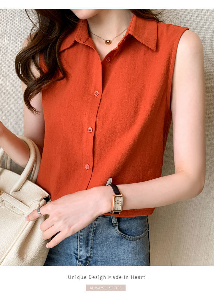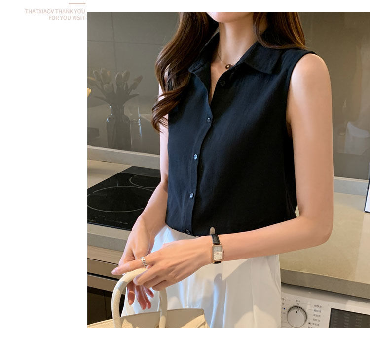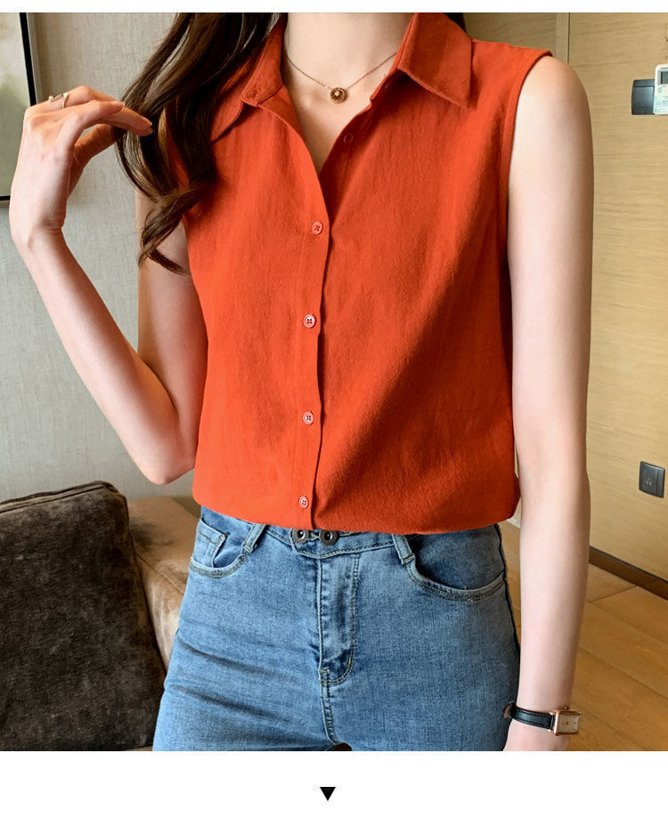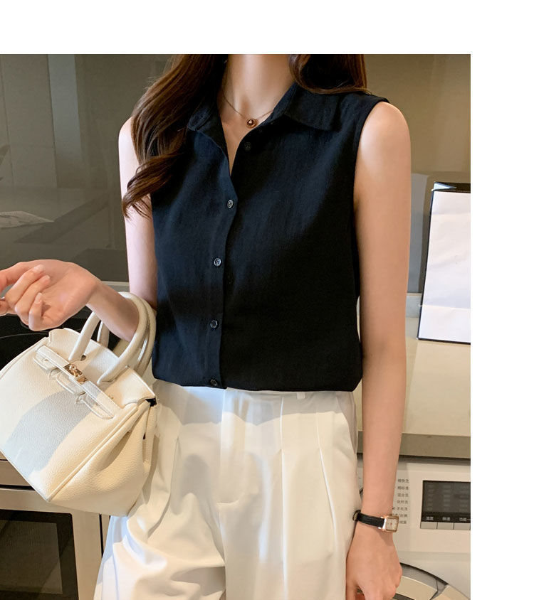 2023 쉬폰 민소매 셔츠 여성용 여름 새로운 우아한 모든 매치 단색 셔츠 느슨한 세련된 기본 조끼 탑스토어 가기