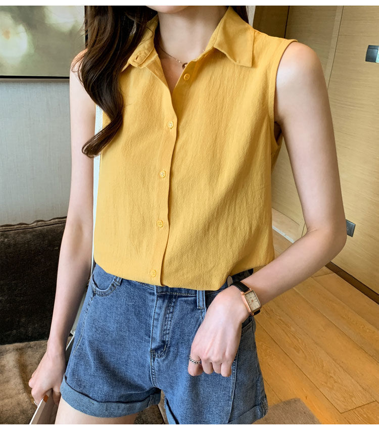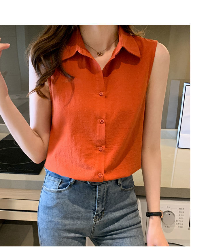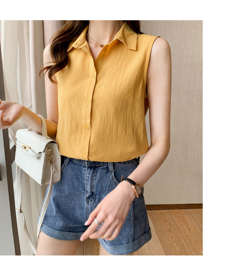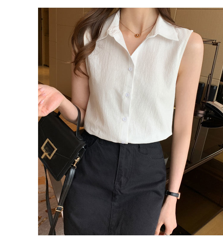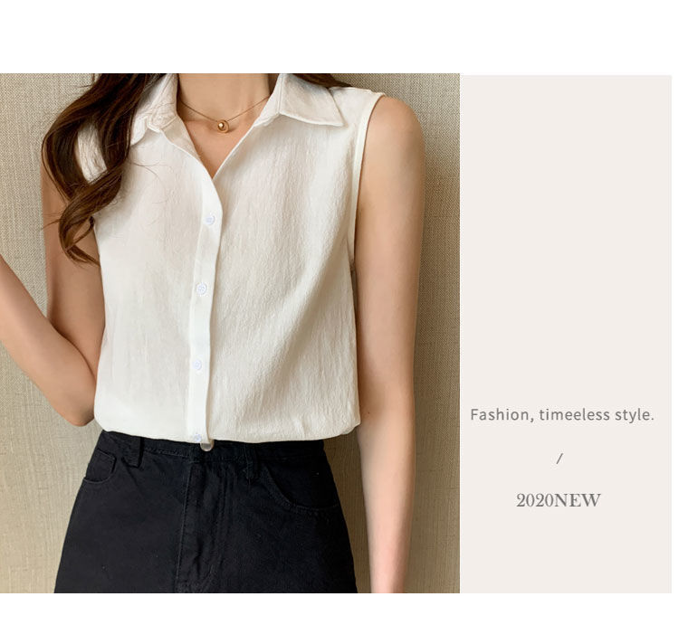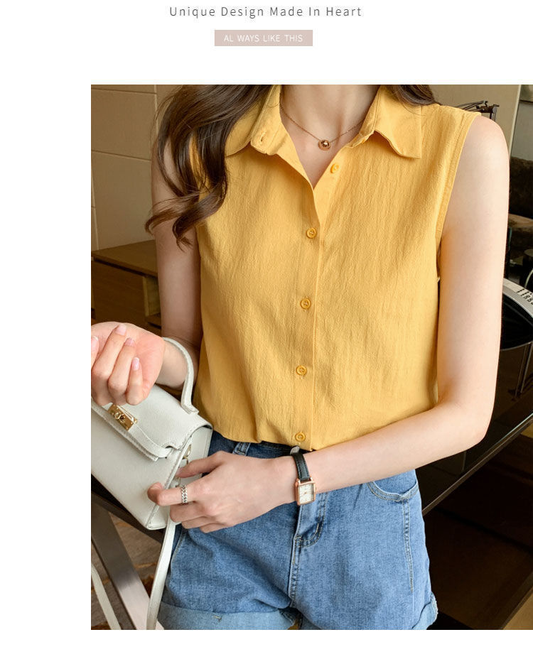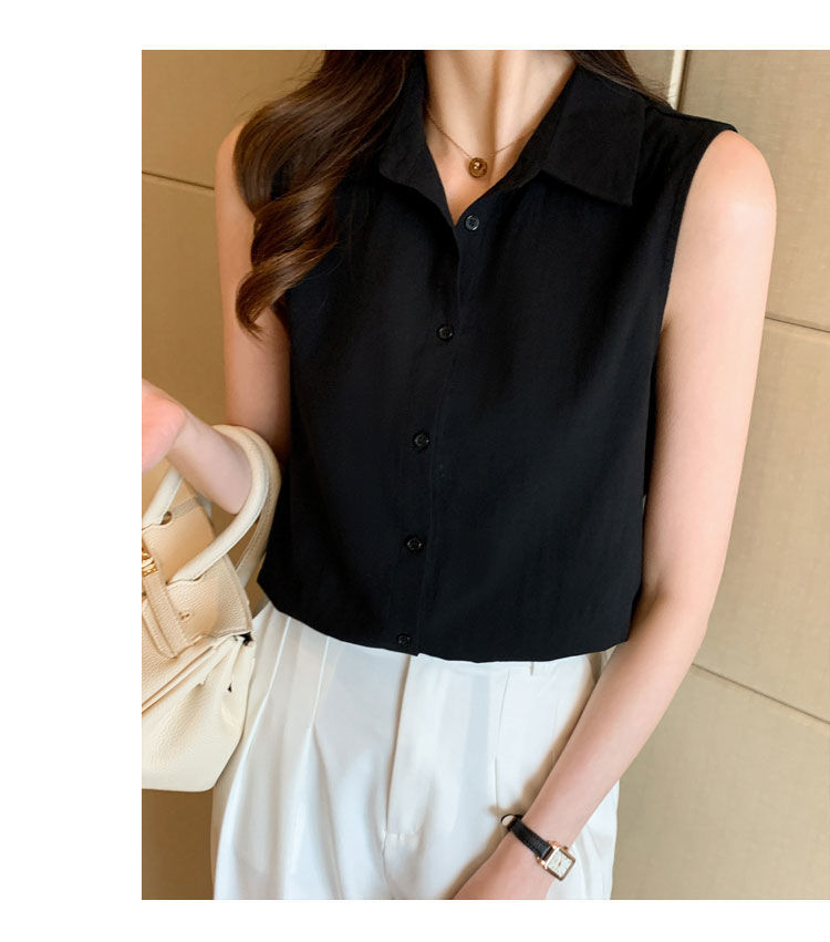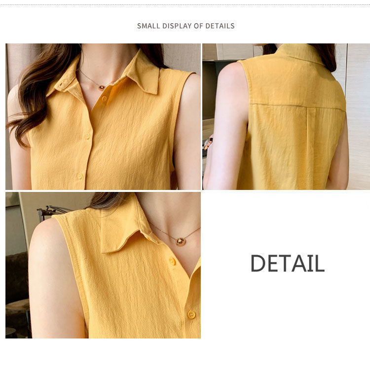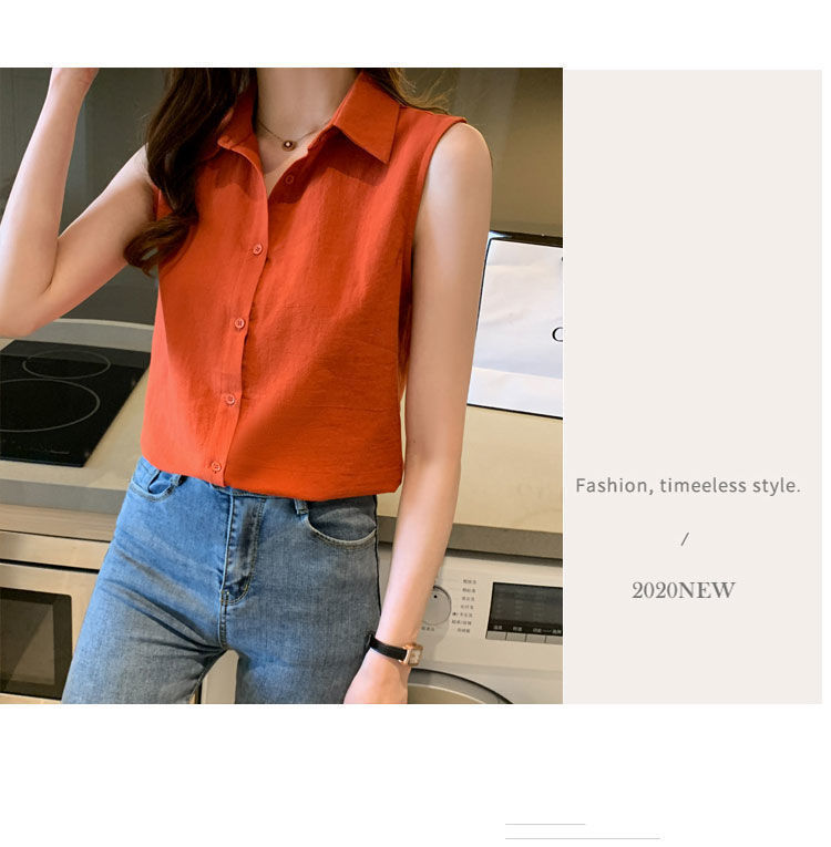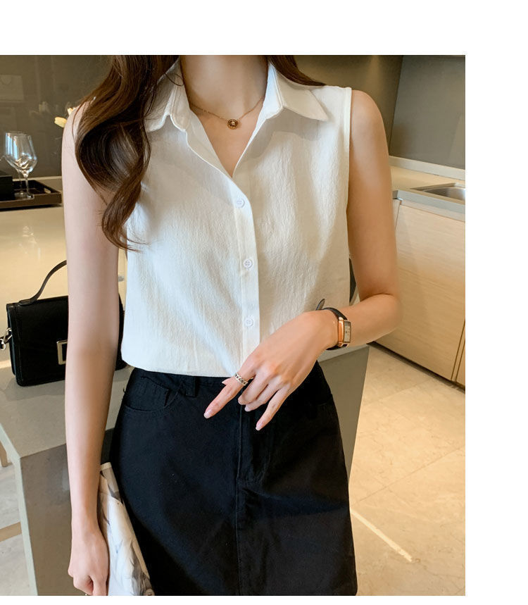 2023 쉬폰 민소매 셔츠 여성용 여름 새로운 우아한 모든 매치 단색 셔츠 느슨한 세련된 기본 조끼 탑스토어 가기