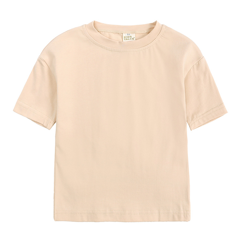 【款式】外贸糖果色t2023夏季新款男童基础纯色上衣女童宝宝百搭半袖棉T恤