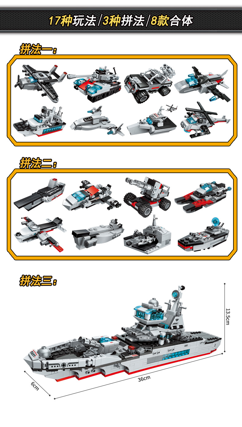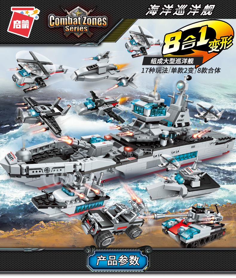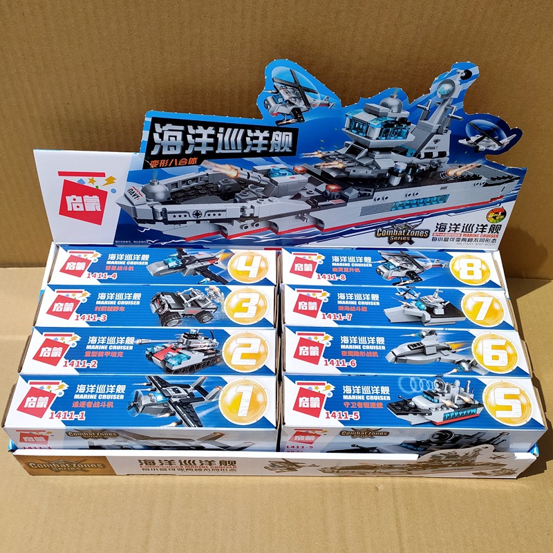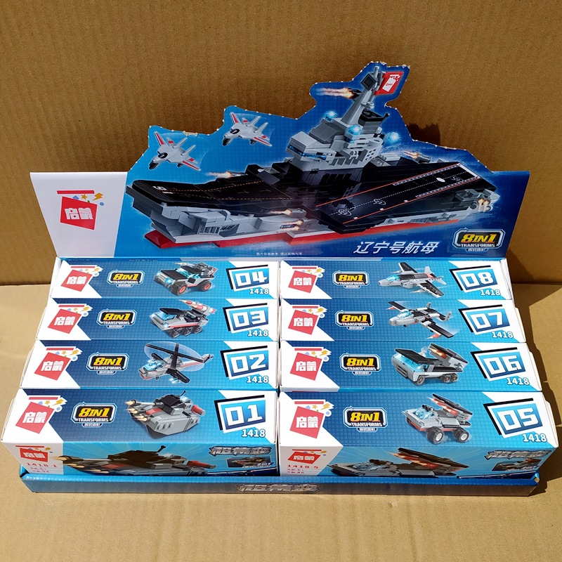 계몽 빌딩 블록 41102 슈퍼 가변 8-in -1 조립 맞춤 Feng Ying 전차 항공 모함 장난감 생일 선물스토어 가기
