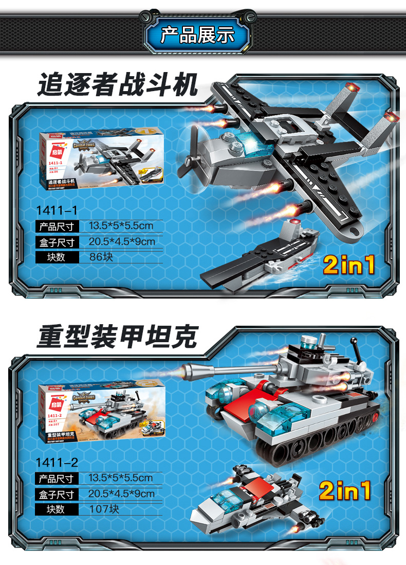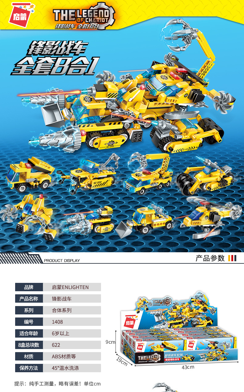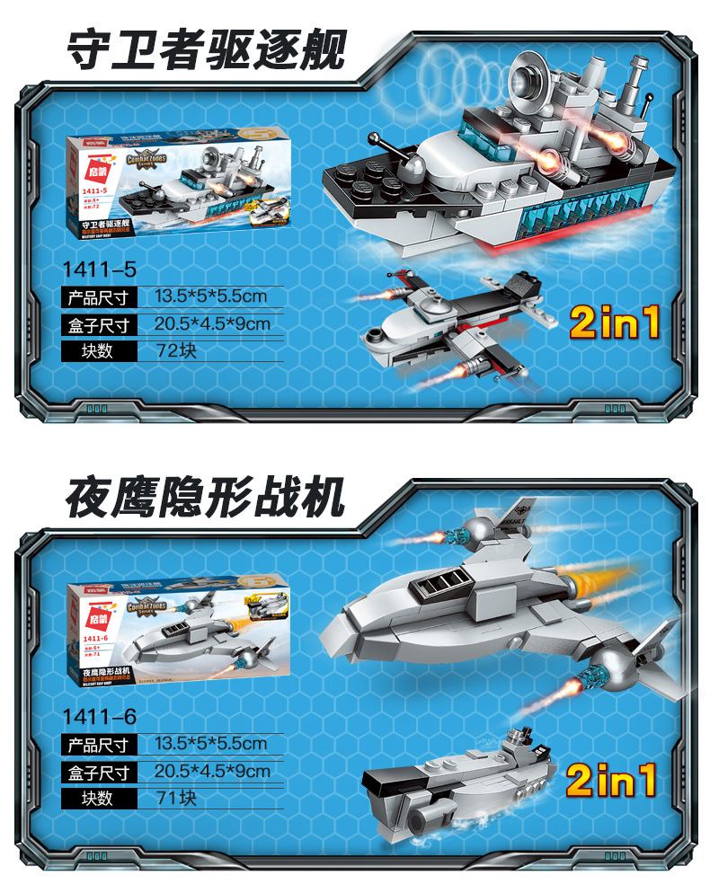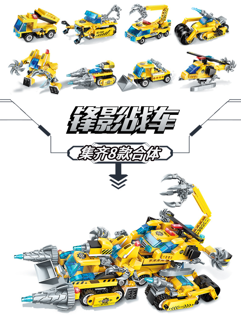 계몽 빌딩 블록 41102 슈퍼 가변 8-in -1 조립 맞춤 Feng Ying 전차 항공 모함 장난감 생일 선물스토어 가기