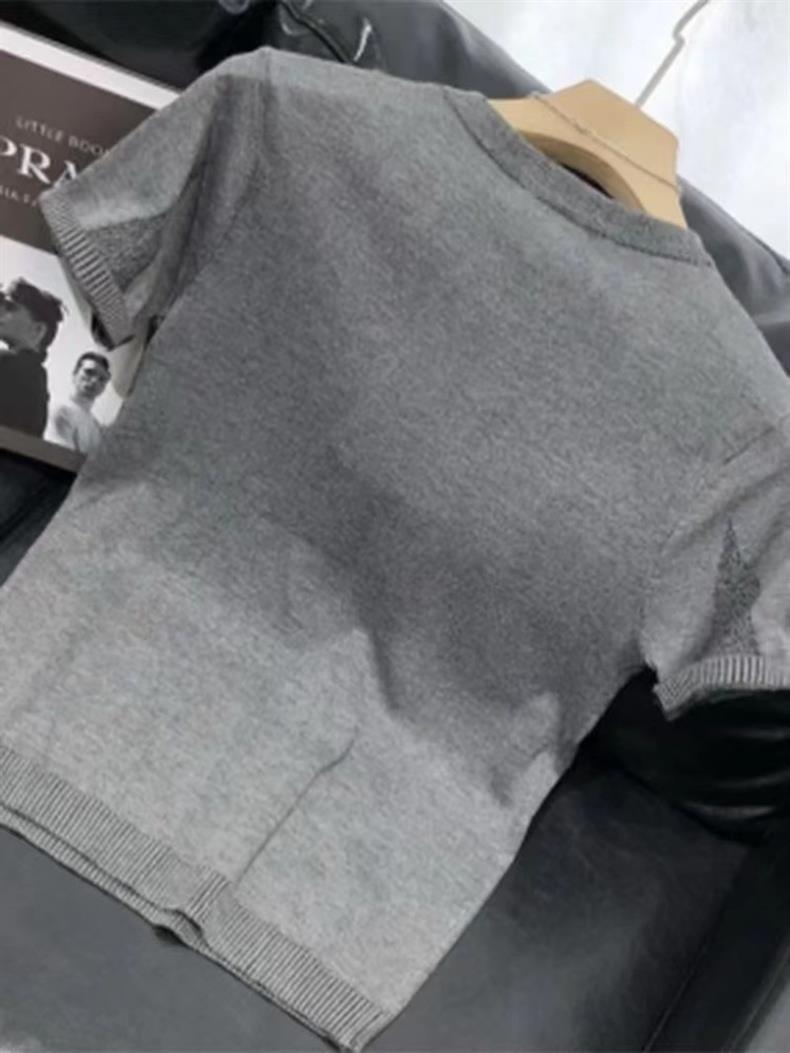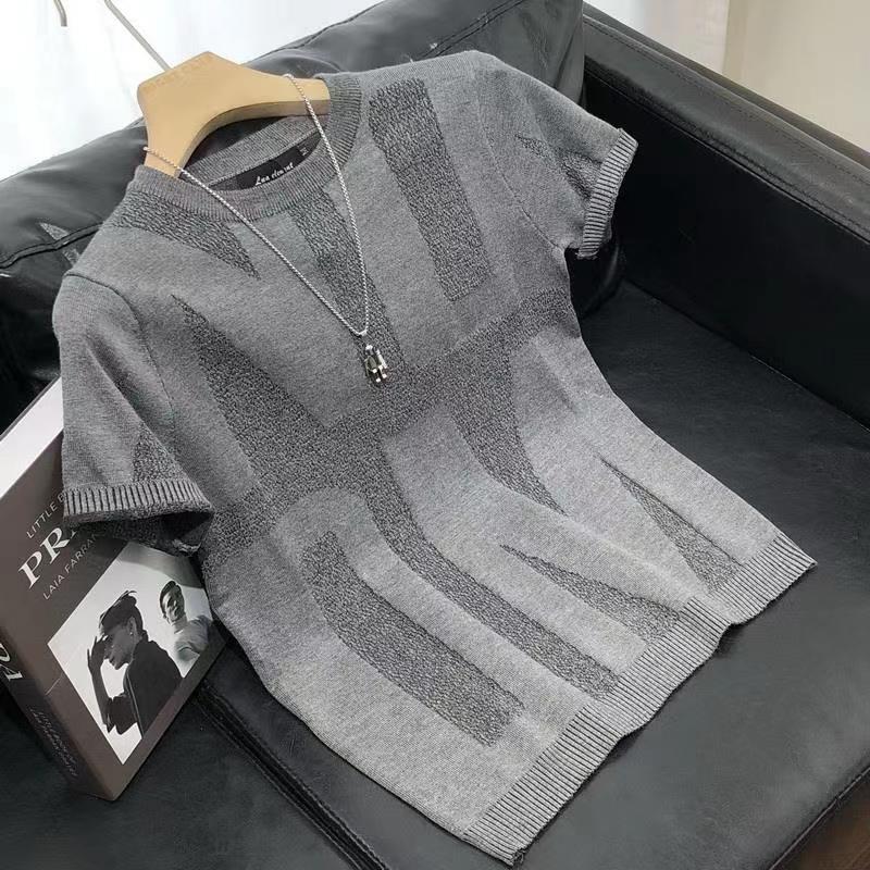 트렌디한 브랜드 반팔 스웨터 남성용 여름 새로운 슬림핏 베이스 티셔츠 2023 캐주얼 반팔 탑 베이스 셔츠