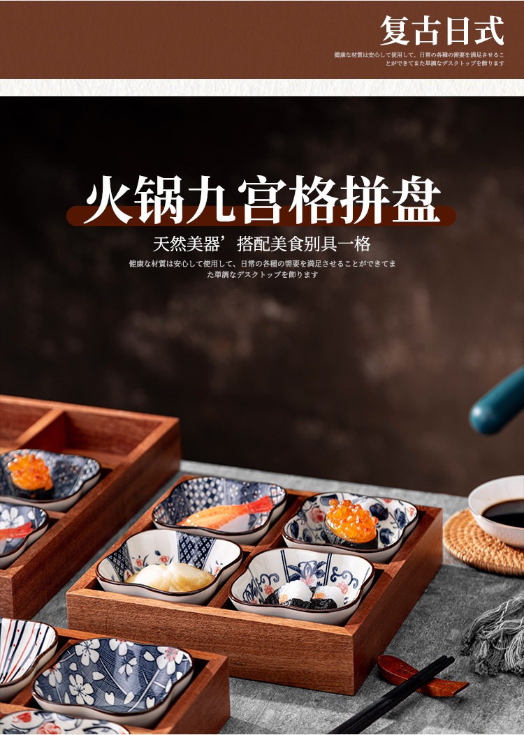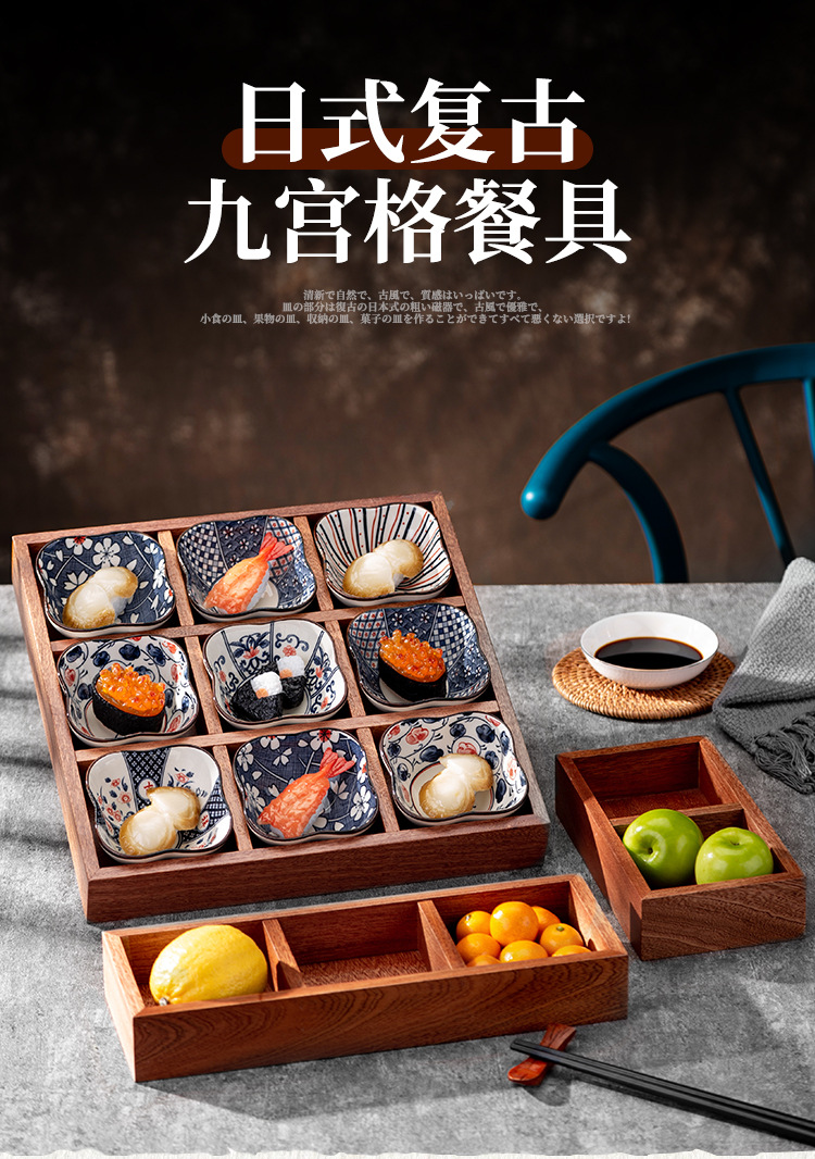 Shapili Wu 백단향 Jiugongge 트레이 뜨거운 냄비 서빙 접시 요리 차 및 포인팅 말린 과일 접시 일치 접시스토어 가기