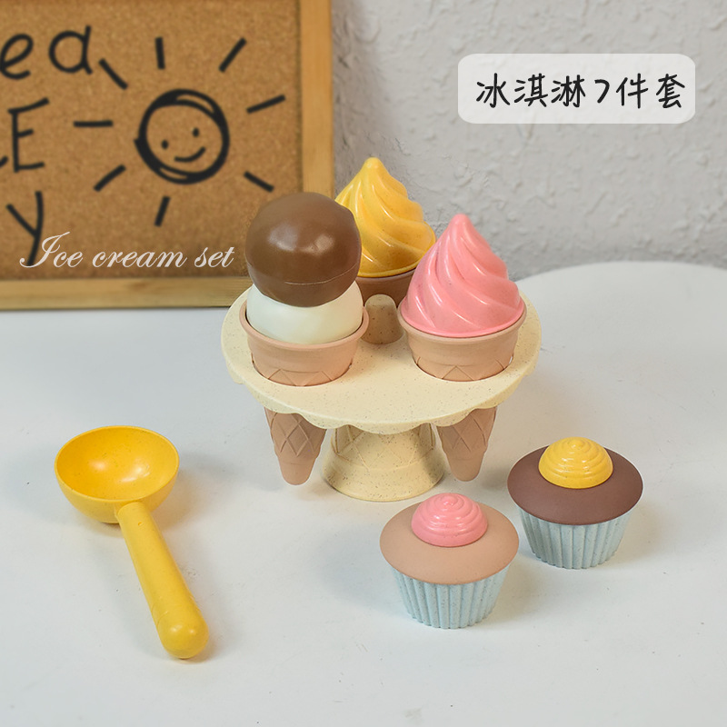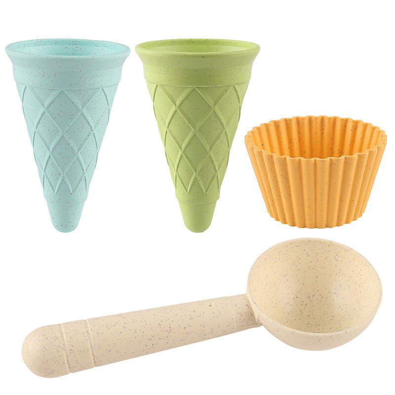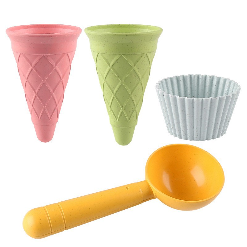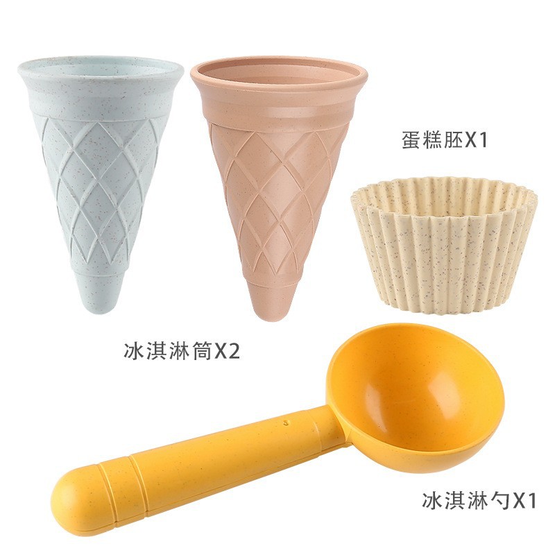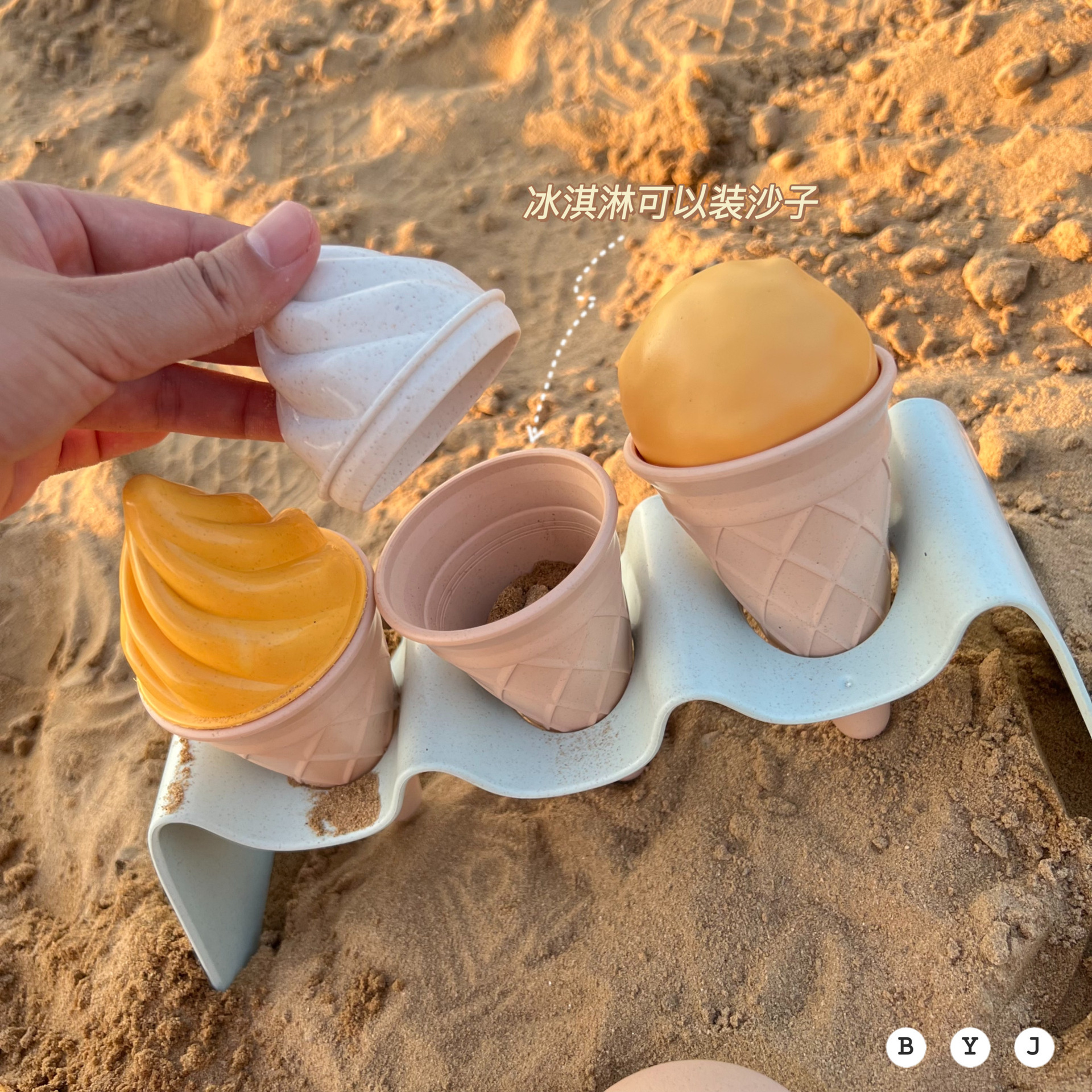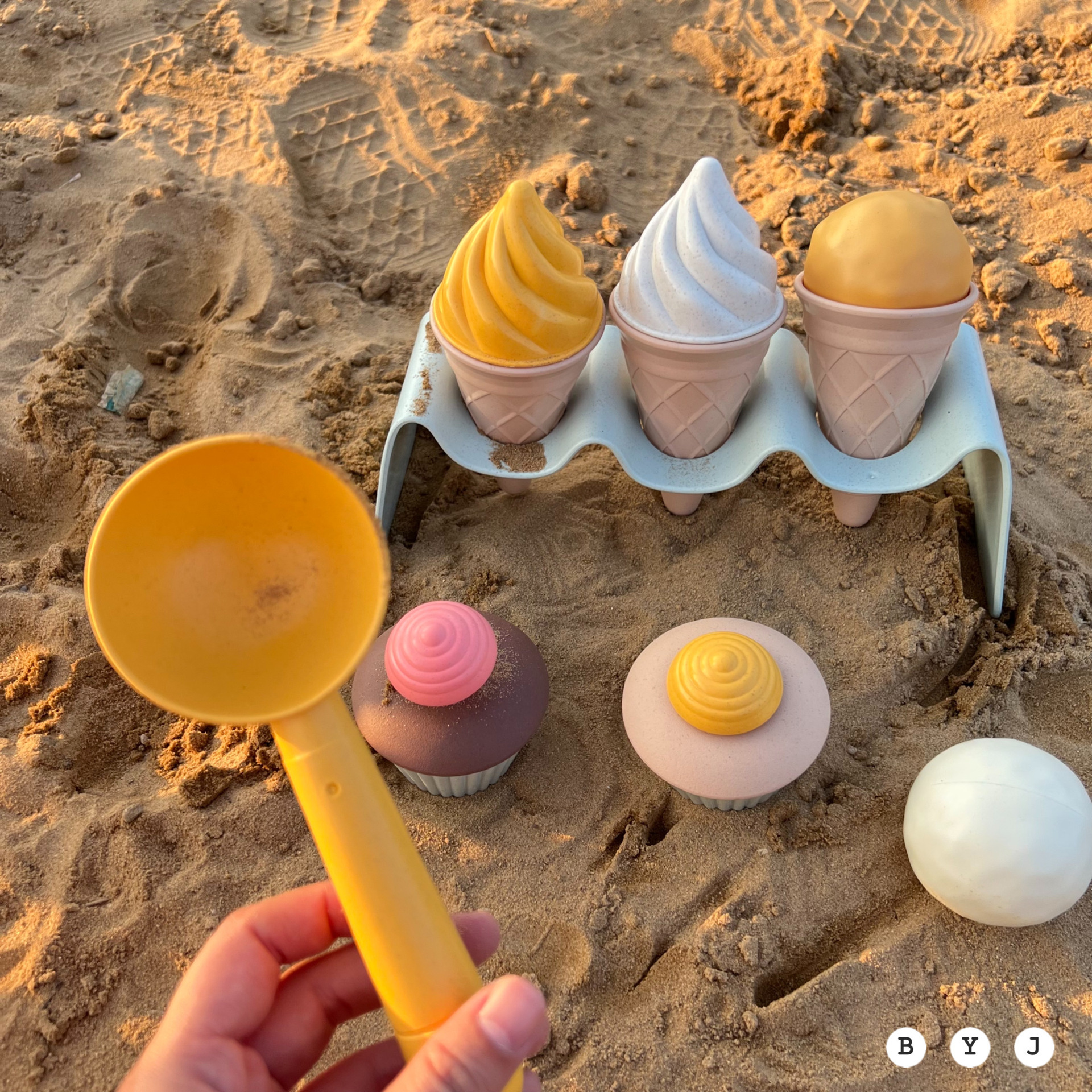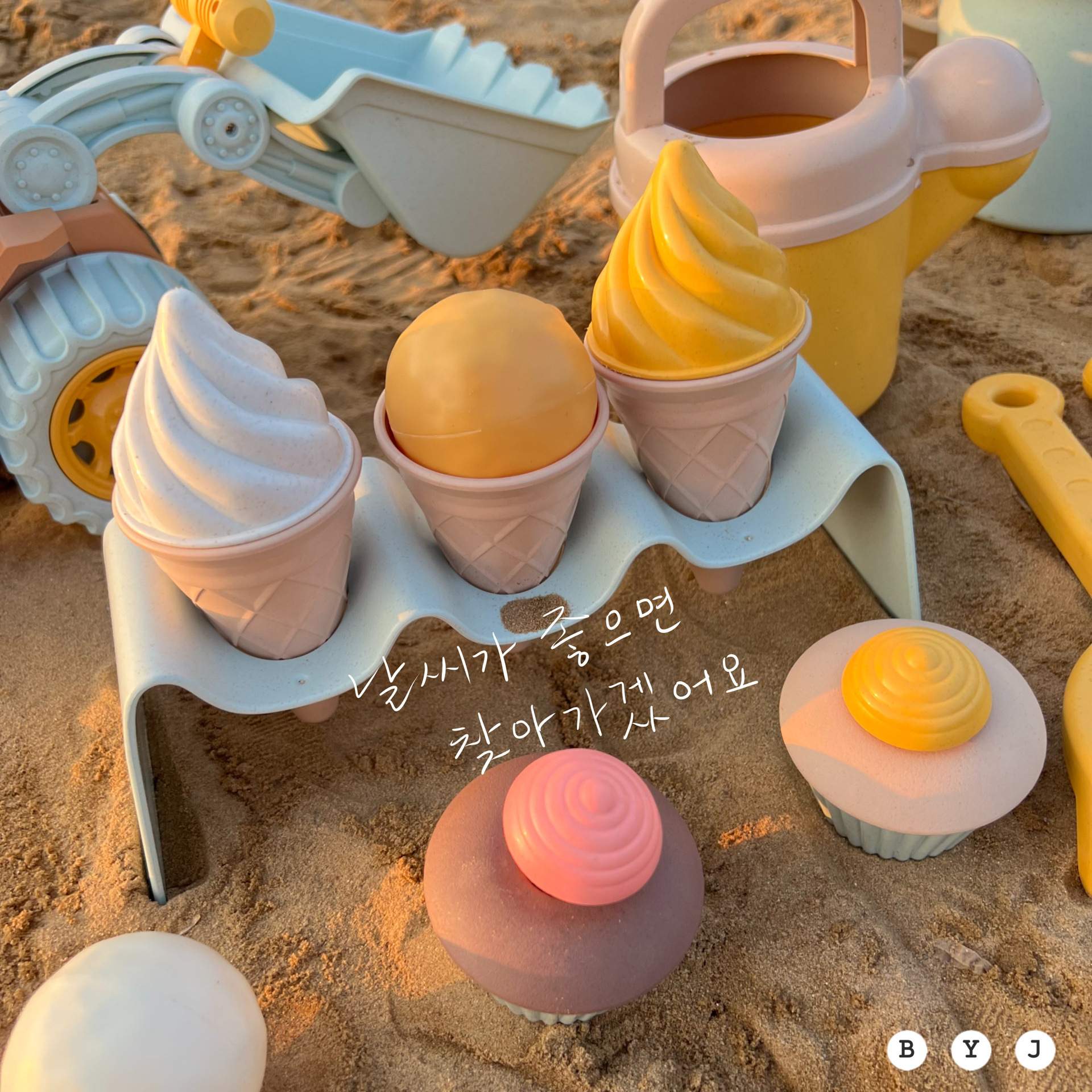 • 베이지 밀짚 아이스크림 콘 4종 세트(메쉬백)
