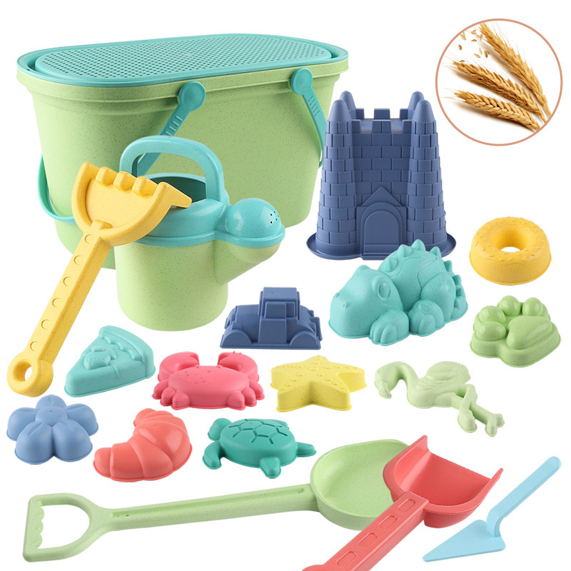 • 밀짚 비치 버킷 9 세트 (그물 가방)