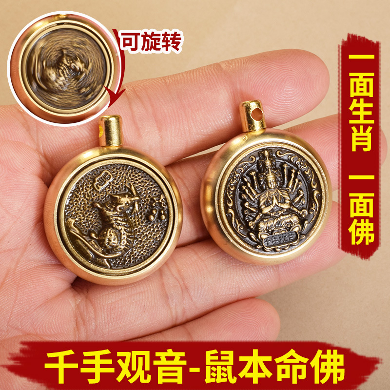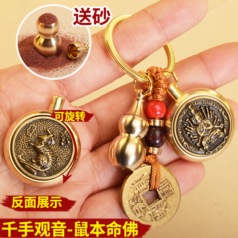 • 황동-다섯 황제 돈 + 조롱박 + 천 손 관음-쥐
