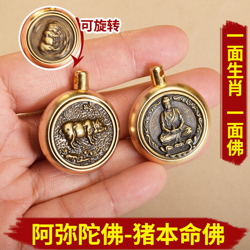 • 황동-다섯 황제 돈 + 조롱박 + 아미타바-돼지