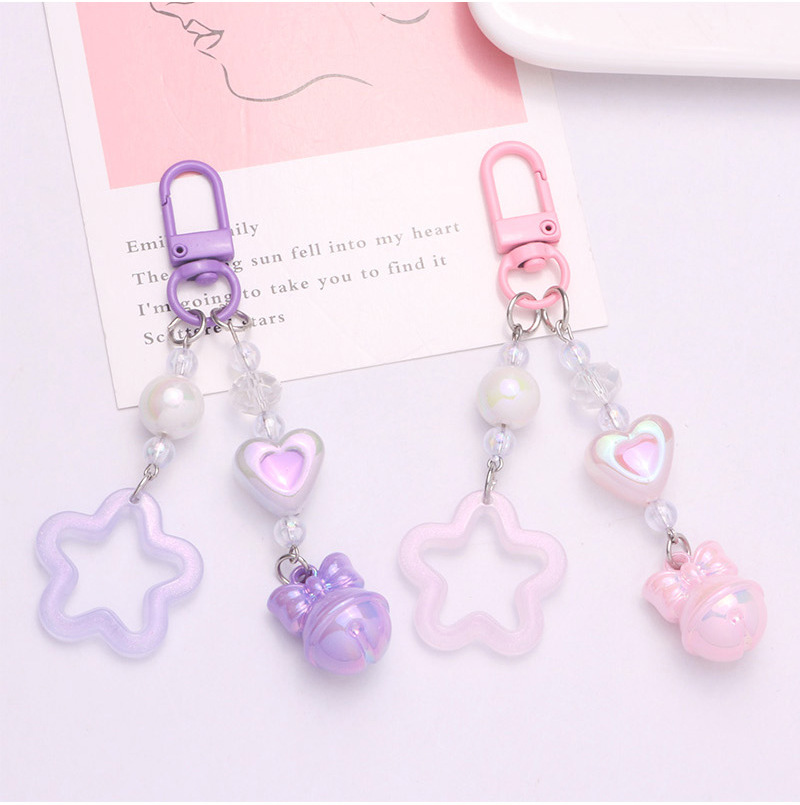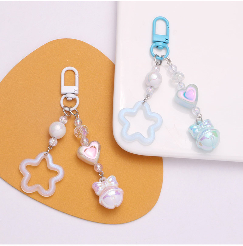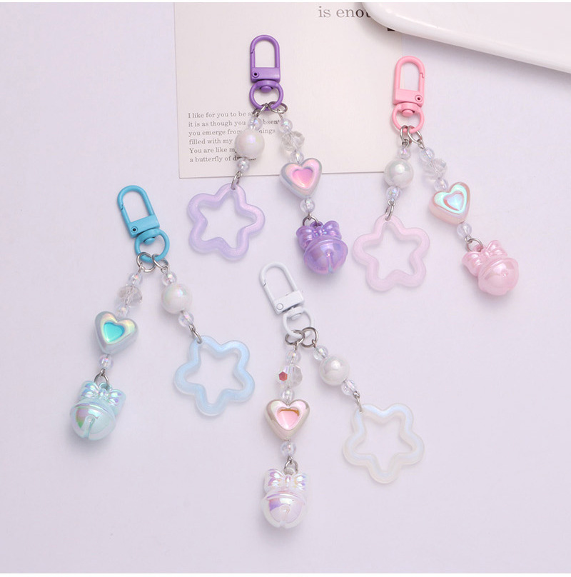 새로운 반짝이 빈 아크릴 다섯개 별 자동차 키 체인 펜던트 크림 2 색 벨 액세서리 가방 액세서리