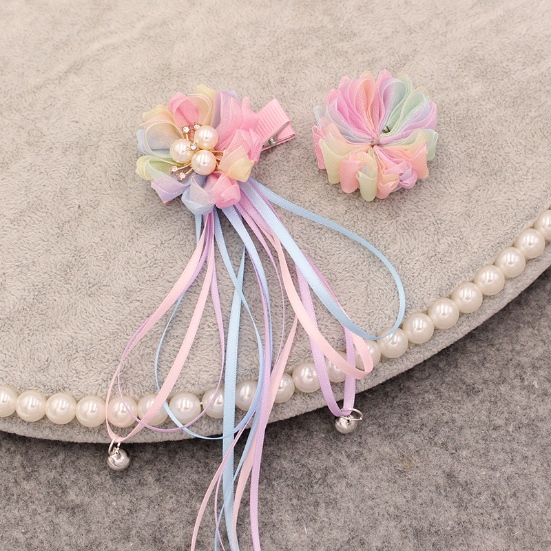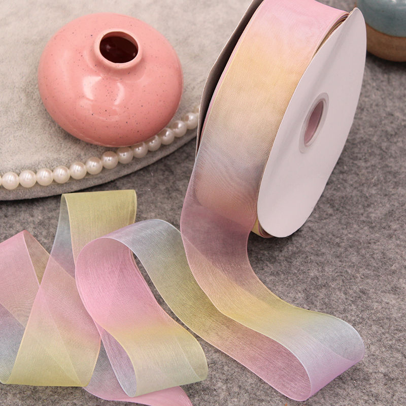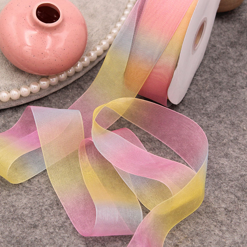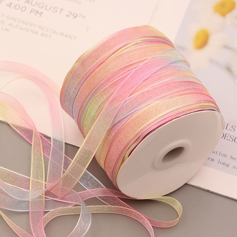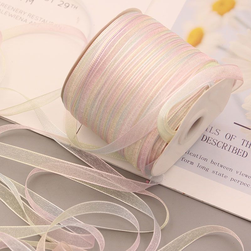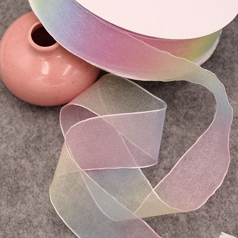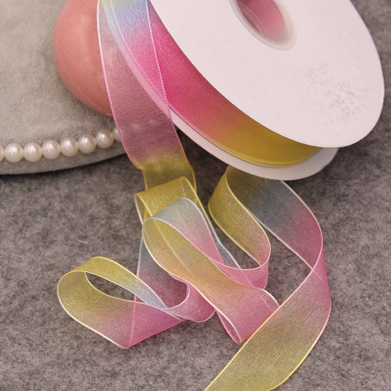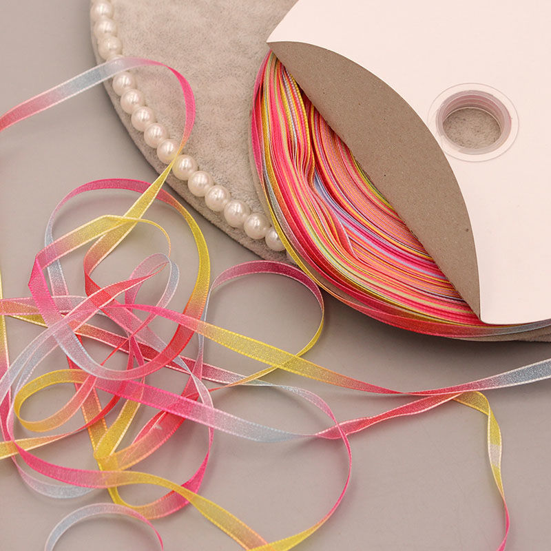 눈 털실 그라디언트 판타지 레인보우 리본 DIY 리본 머리핀 한푸 꽃잎 모자 리본