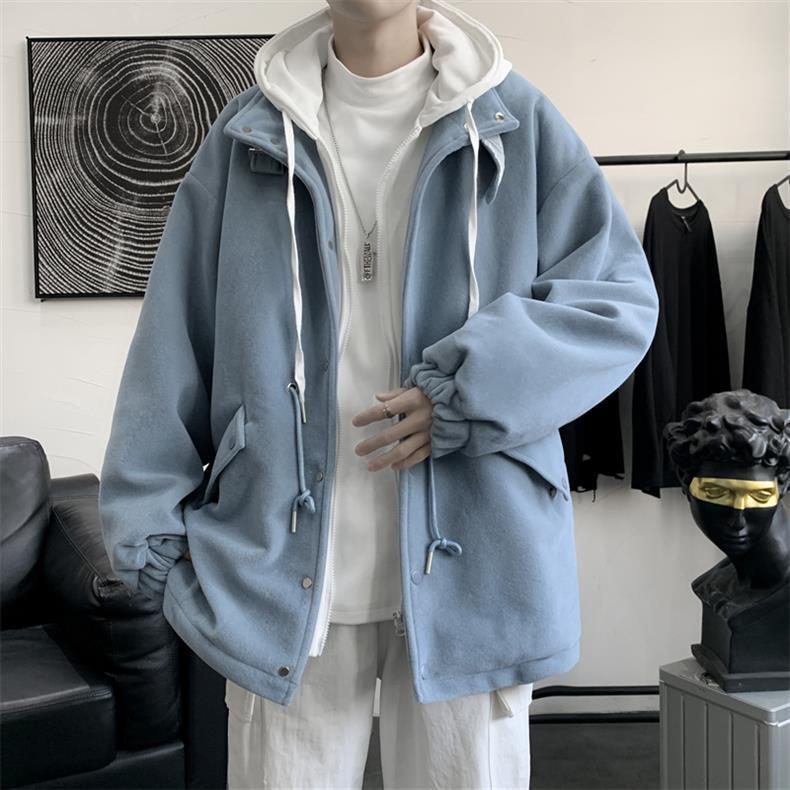 소년을위한 일본식 가짜 투피스 재킷 유행 느슨한 캐주얼 후드 재킷 유행 브랜드 모든 매치