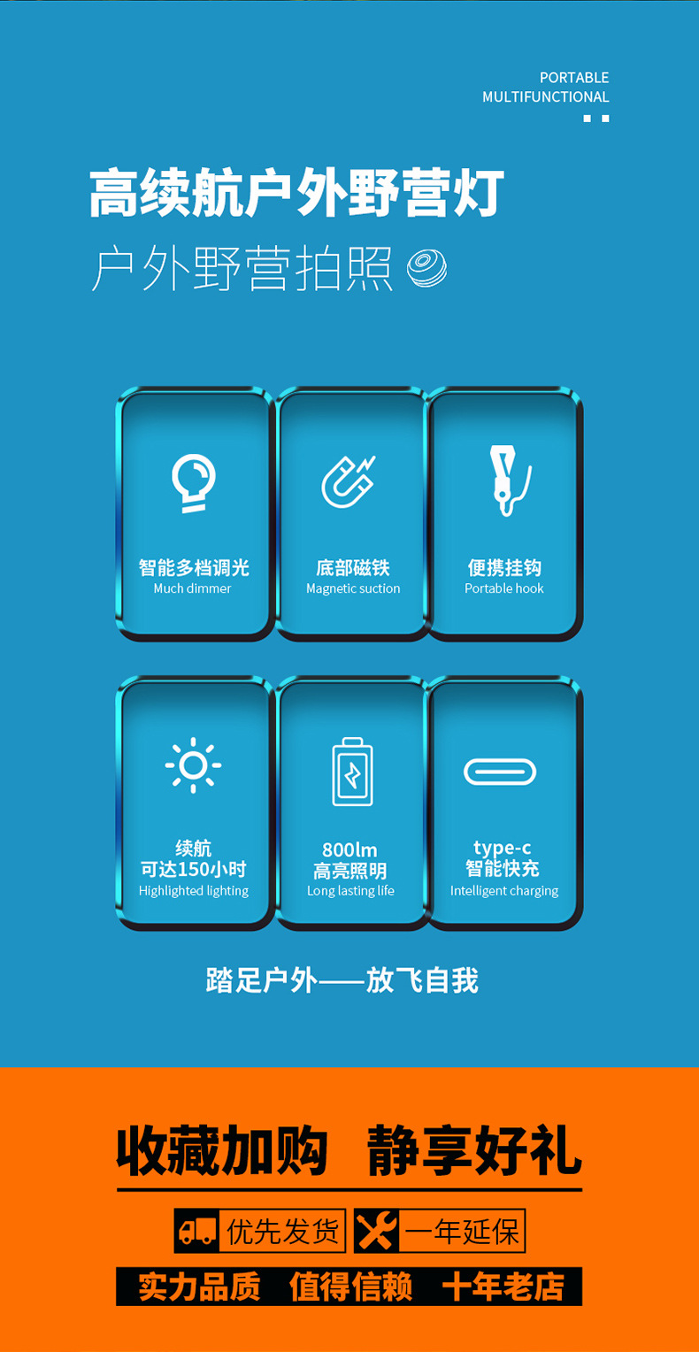 야외 캠핑 조명 방수 조명 캠프 조명 비상 조명 건조 리튬 이중 사용 필드 휴대용 충전식 텐트 조명