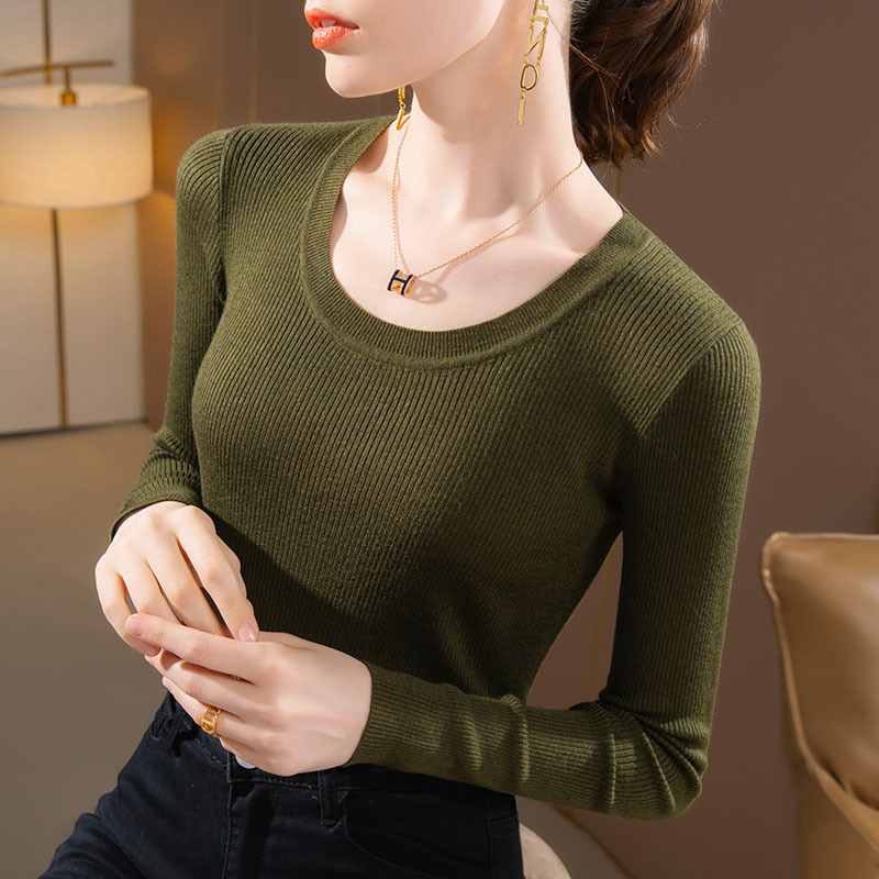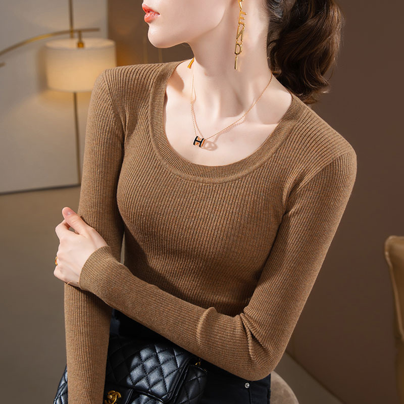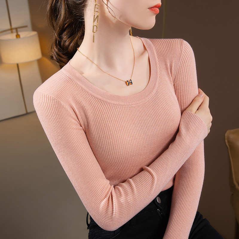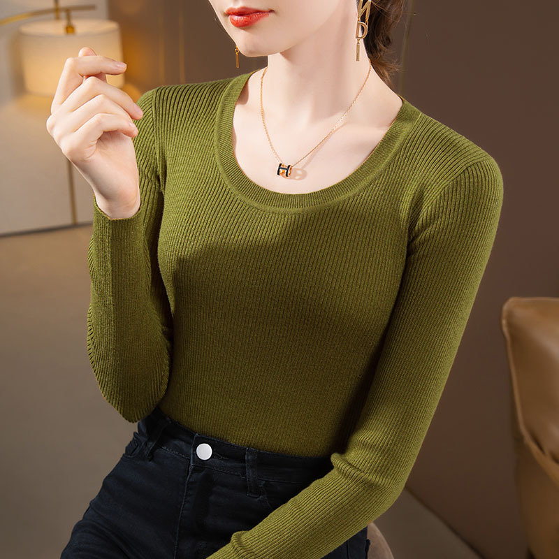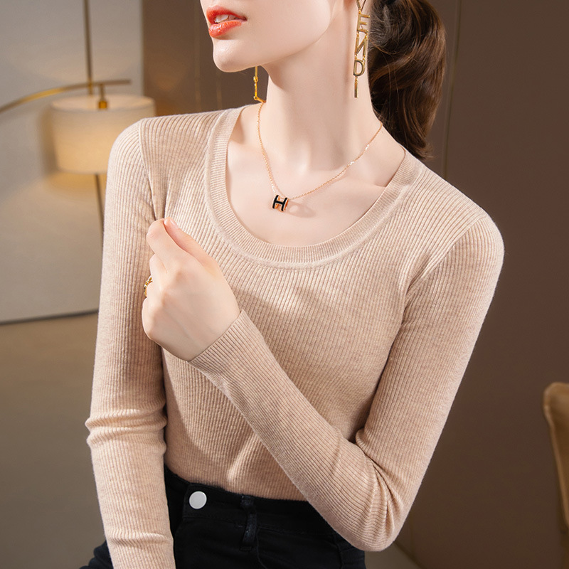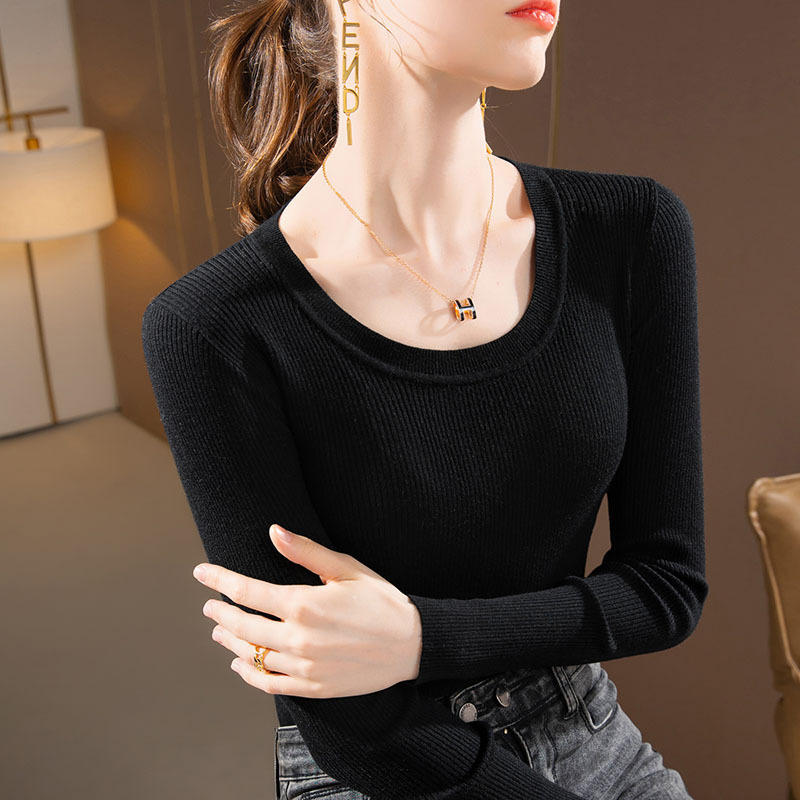 라운드넥 니트 이너웨어 여성용 2025 가을 겨울 신상 단색 풀오버 스웨터 따뜻한 이너웨어 타이트핏 상의