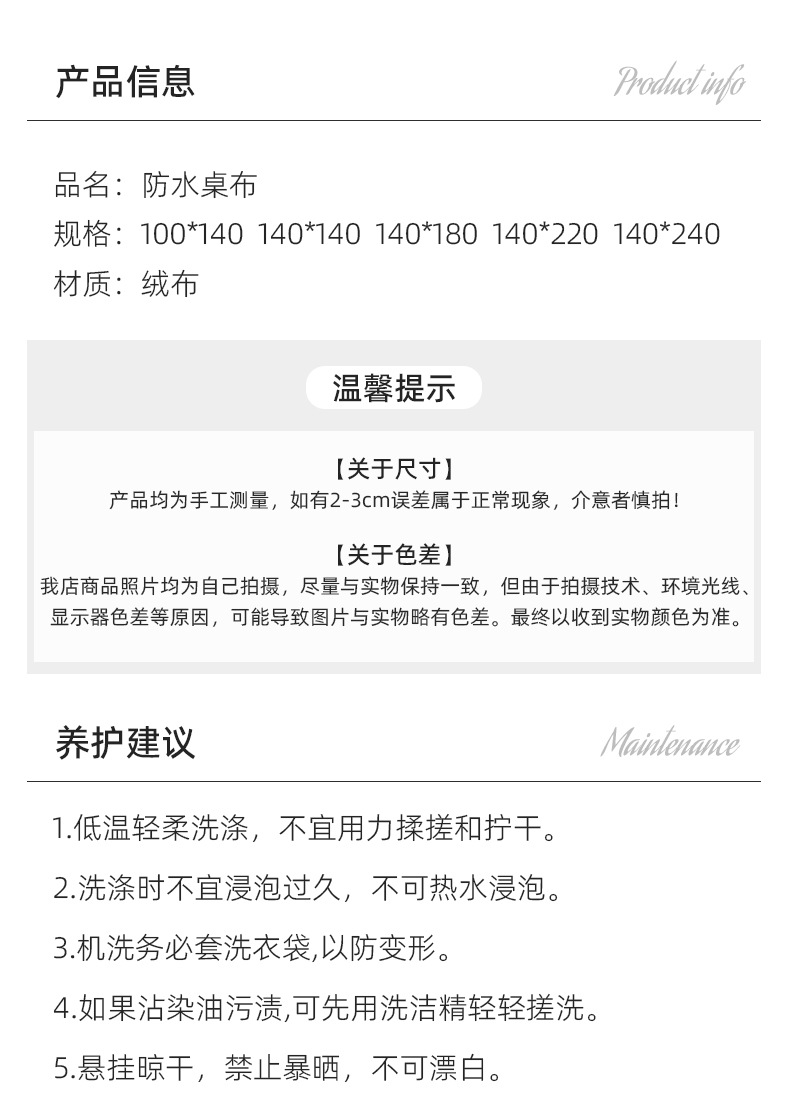 인스 스타일 모던 심플 방수 방유 테이블보 직사각형 고급 테이블 매트 세탁 불필요 캠핑 피크닉 테이블보스토어 가기