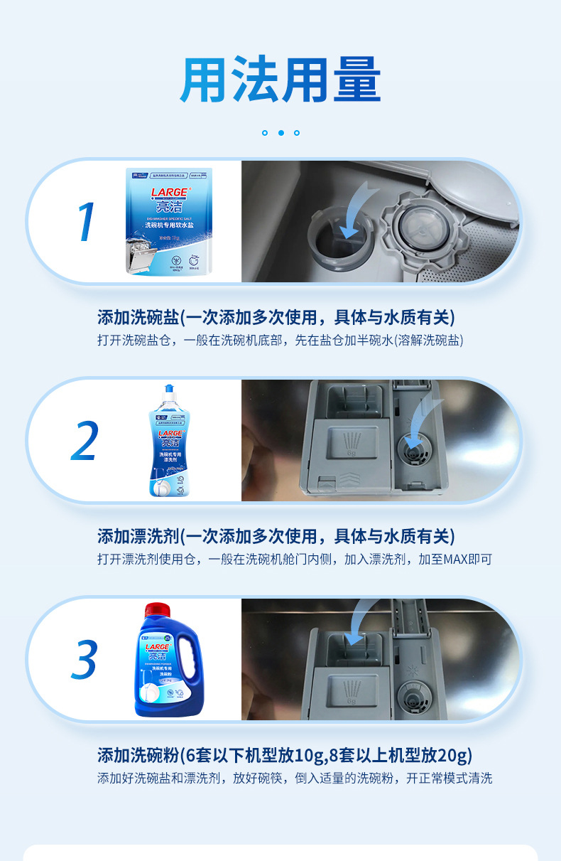 대형 식기 세척기 3 피스 세트 2450G 접시 분말 특수 소금 헹굼 제 세트 식기 세척기 소모품 도매스토어 가기