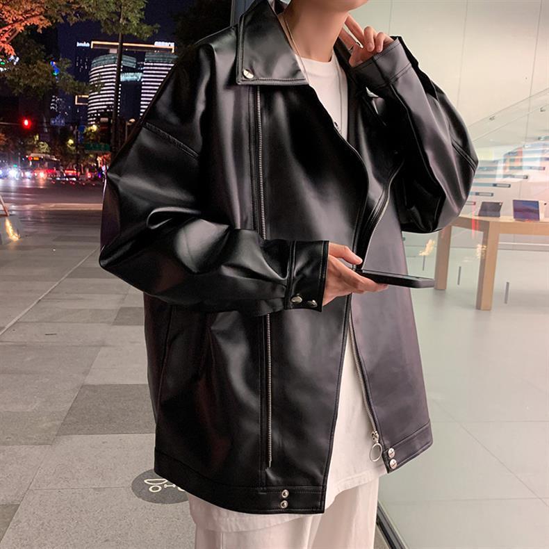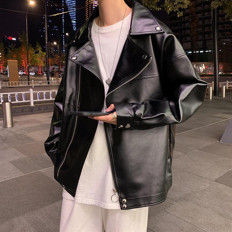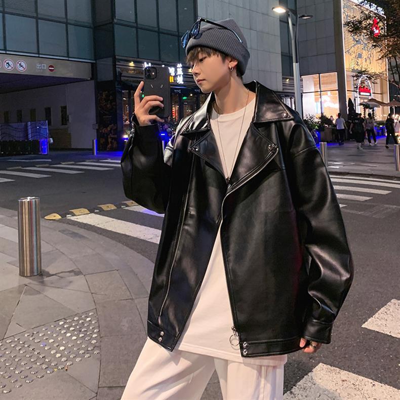 봄과 가을 남녀 자전거 의류 한국식 트렌디 스트리트 커플 루즈한 미국식 PU 가죽 자켓