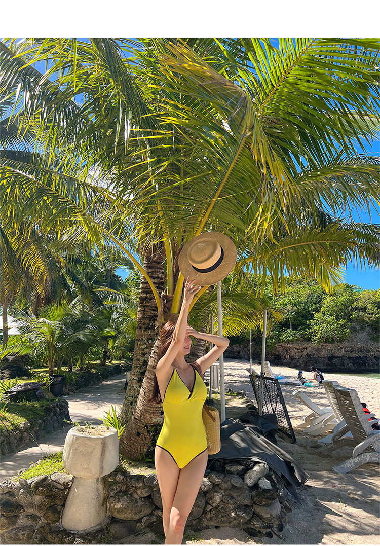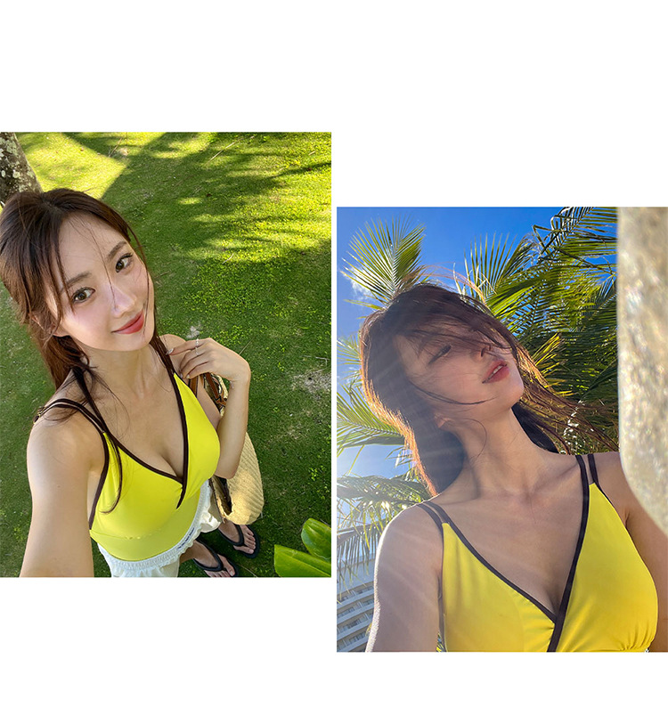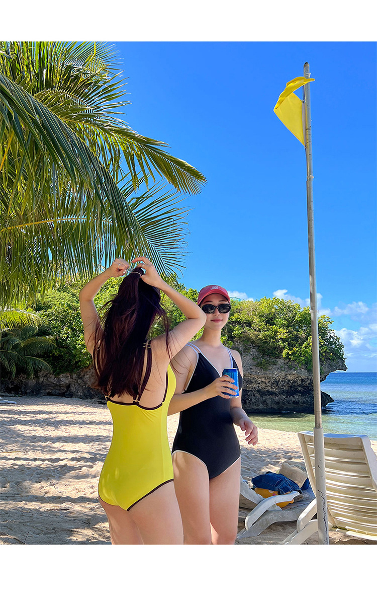 한국 빈티지 작은 가슴 푸쉬 업 원피스 수영복 여성용 배꼽 덮기 슬리밍 작은 샤넬 스타일 섹시 삼각형 휴가 수영복스토어 가기